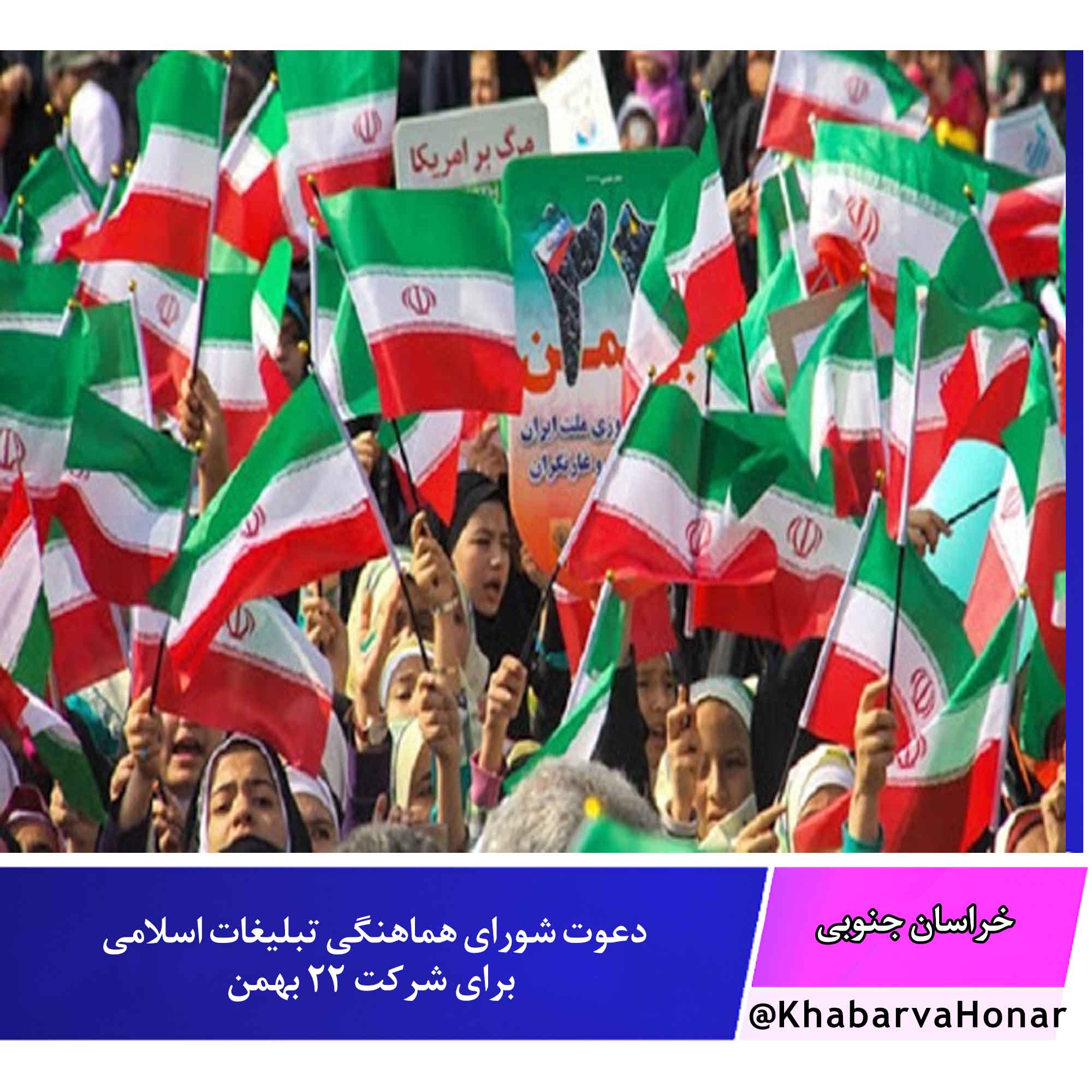 شورای هماهنگی تبلیغات اسلامی خراسان جنوبی از اقشار مختلف مردم برای حضور در مراسم باشکوه پیروزی انقلاب اسلامی شرکت کنند.