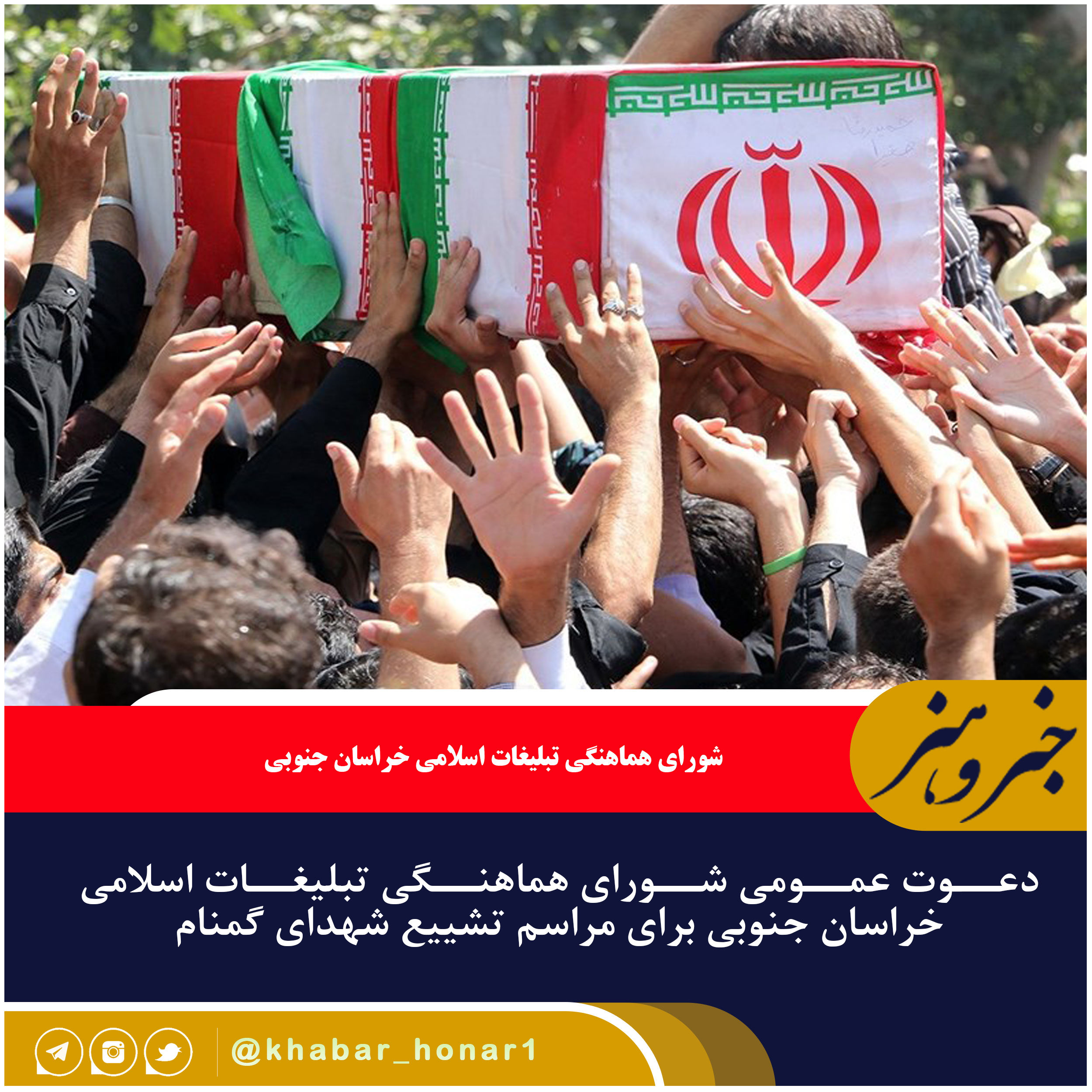 شورای هماهنگی تبلیغات اسلامی خراسان جنوبی در اطلاعیه ای از مردم جهت مراسم تشییع شهدای عزیز گمنام دعوت عمومی به عمل آورد.
