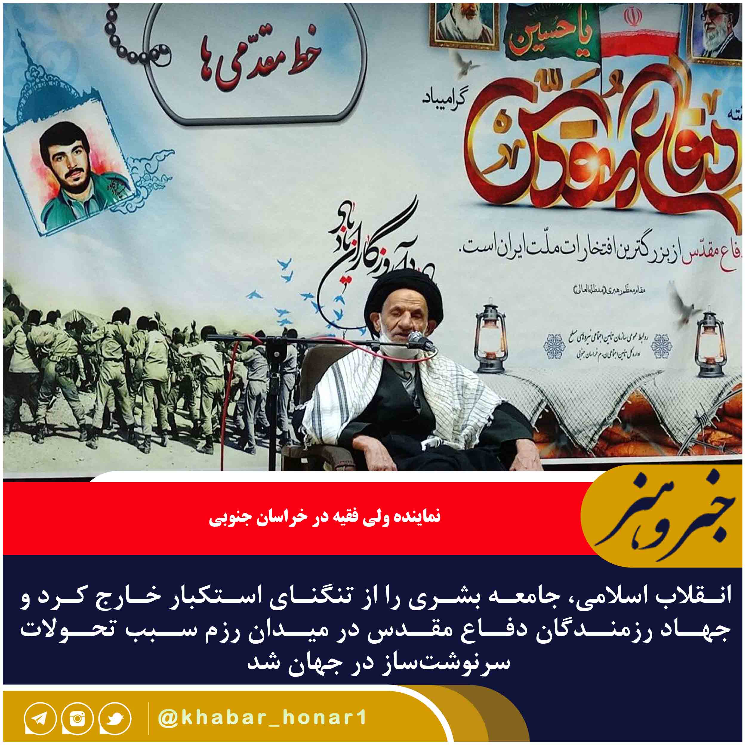 نماینده ولی فقیه در خراسان جنوبی و امام جمعه بیرجند گفت: انقلاب اسلامی، جامعه بشری را از تنگنای استکبار خارج کرد و جهاد رزمندگان دفاع مقدس در میدان رزم سبب تحولات سرنوشتساز در جهان شد.