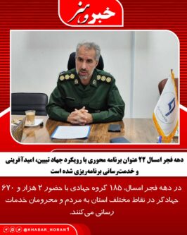 وی بیان کرد: برگزاری رویداد استانی «سرافراز ایران ۲» در حوزه تولید آثار گرافیکی، رویداد سرود «سرافراز ایران» با مشارکت بیش از ۵۰۰ گروه سرود، جشنهای انقلاب و نیمه شعبان، دعای توسل سراسری و ویژهبرنامههای مذهبی در حسینیه جماران بیرجند از دیگر برنامههای پیشبینیشده در این ایام است.