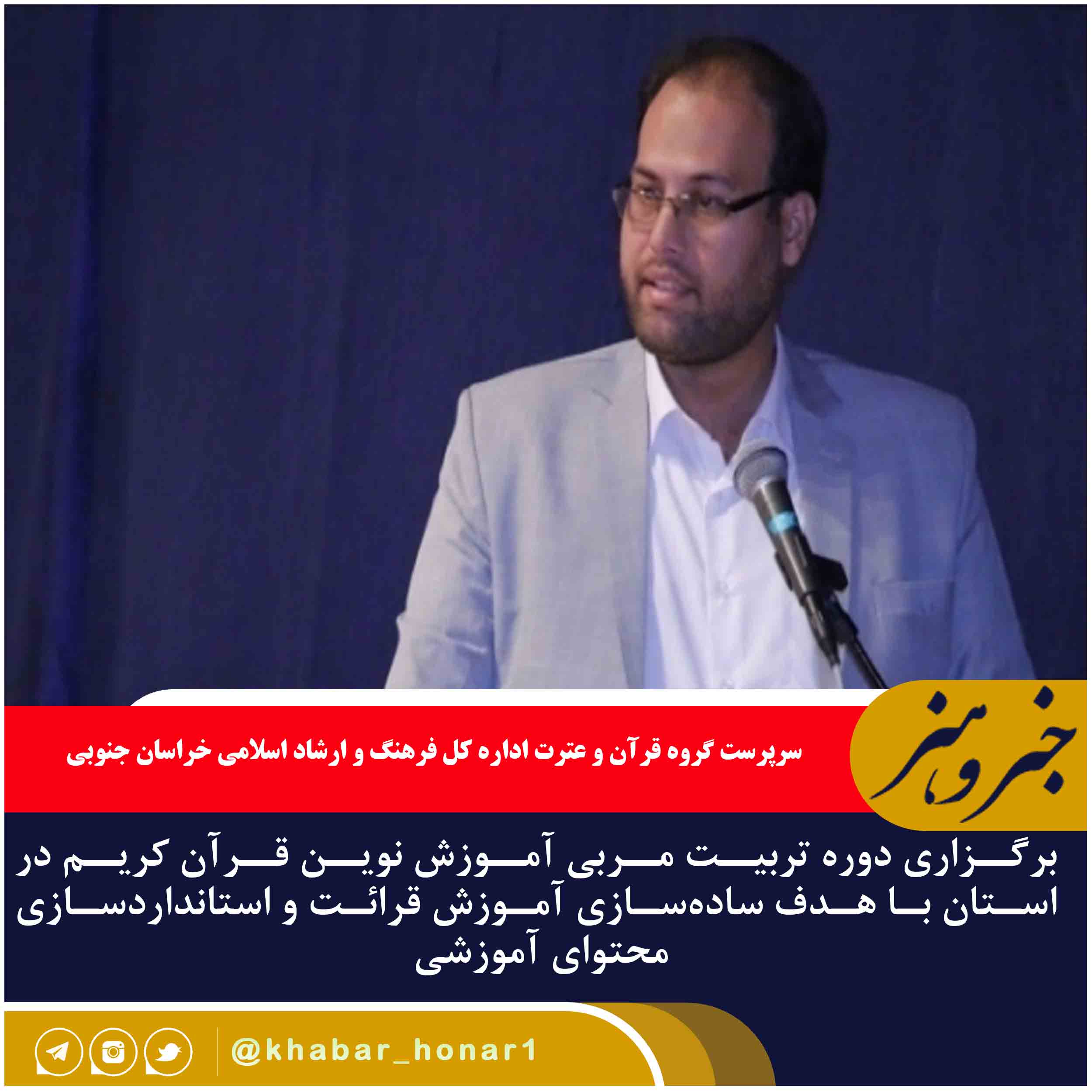 سرپرست گروه قرآن و عترت اداره کل فرهنگ و ارشاد اسلامی خراسان جنوبی از برگزاری دوره تربیت مربی آموزش نوین قرآن کریم در استان با هدف سادهسازی آموزش قرائت و استانداردسازی محتوای آموزشی خبر داد.