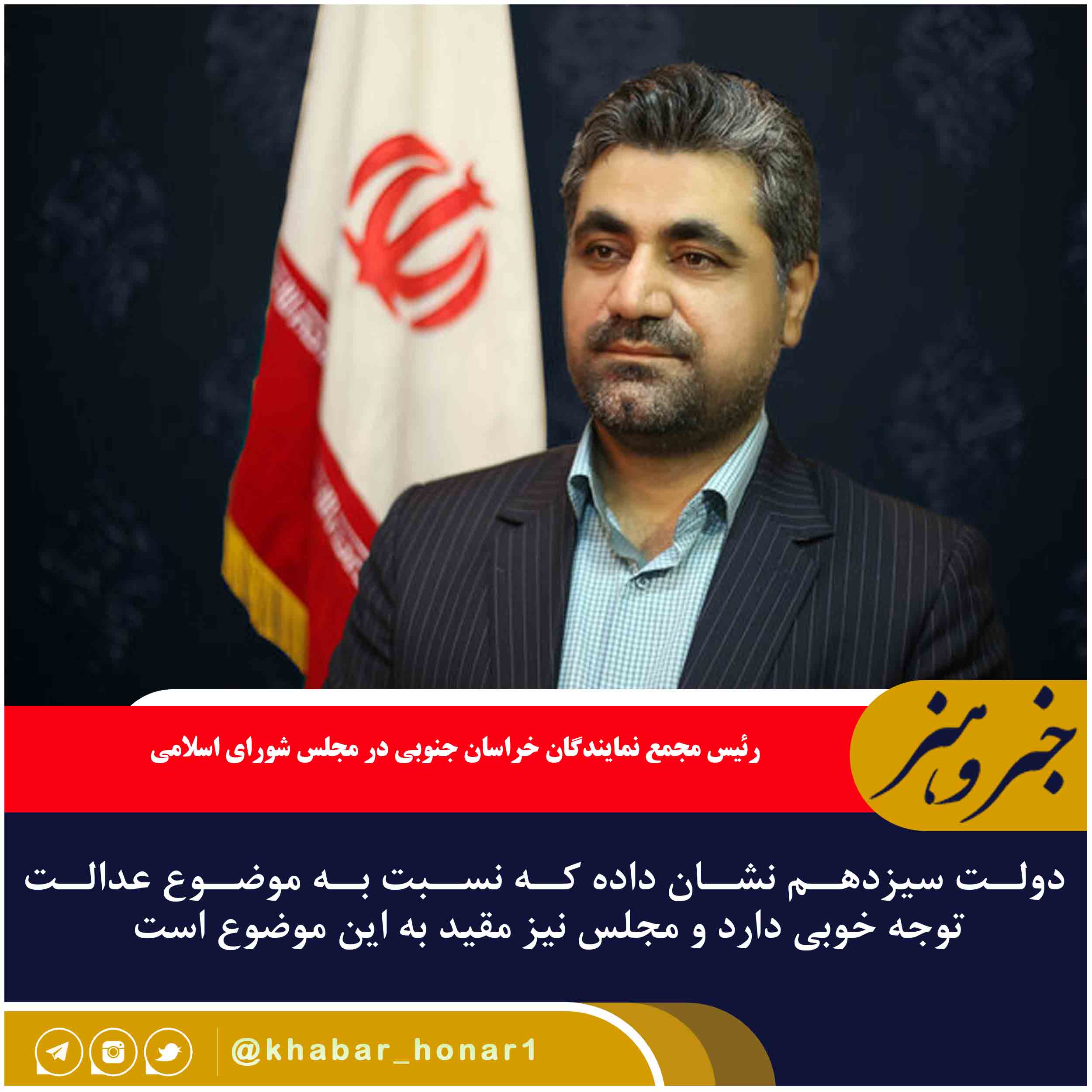 رئیس مجمع نمایندگان خراسان جنوبی در مجلس شورای اسلامی گفت: دولت سیزدهم نشان داده که نسبت به موضوع عدالت توجه خوبی دارد و مجلس نیز مقید به این موضوع است.