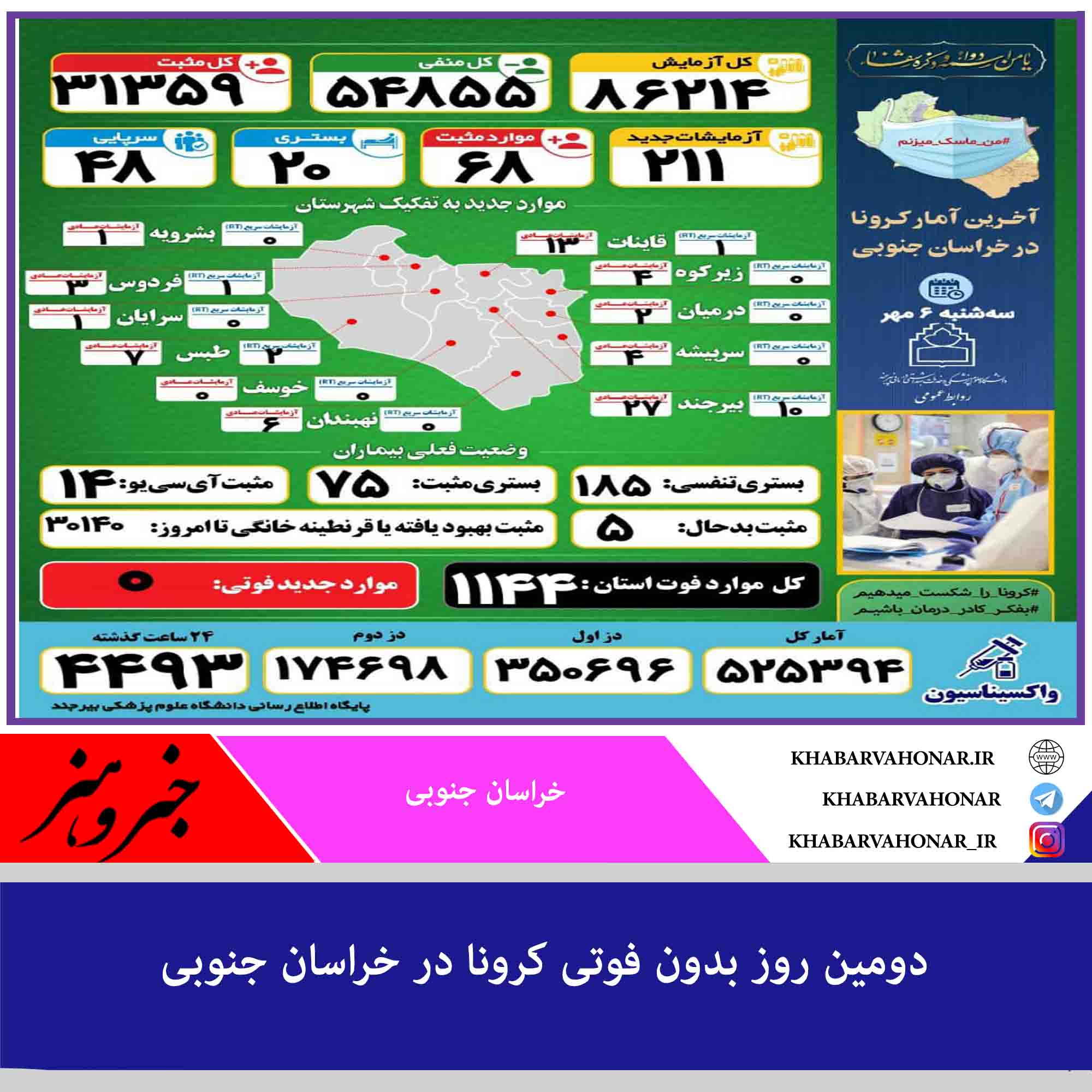 ?در شبانه روز گذشته مورد جدید فوت ناشی از بیماری کرونا در خراسان جنوبی ثبت نشد و مجموع جان باختگان کرونا همان هزار و ۱۴۴ نفر است.