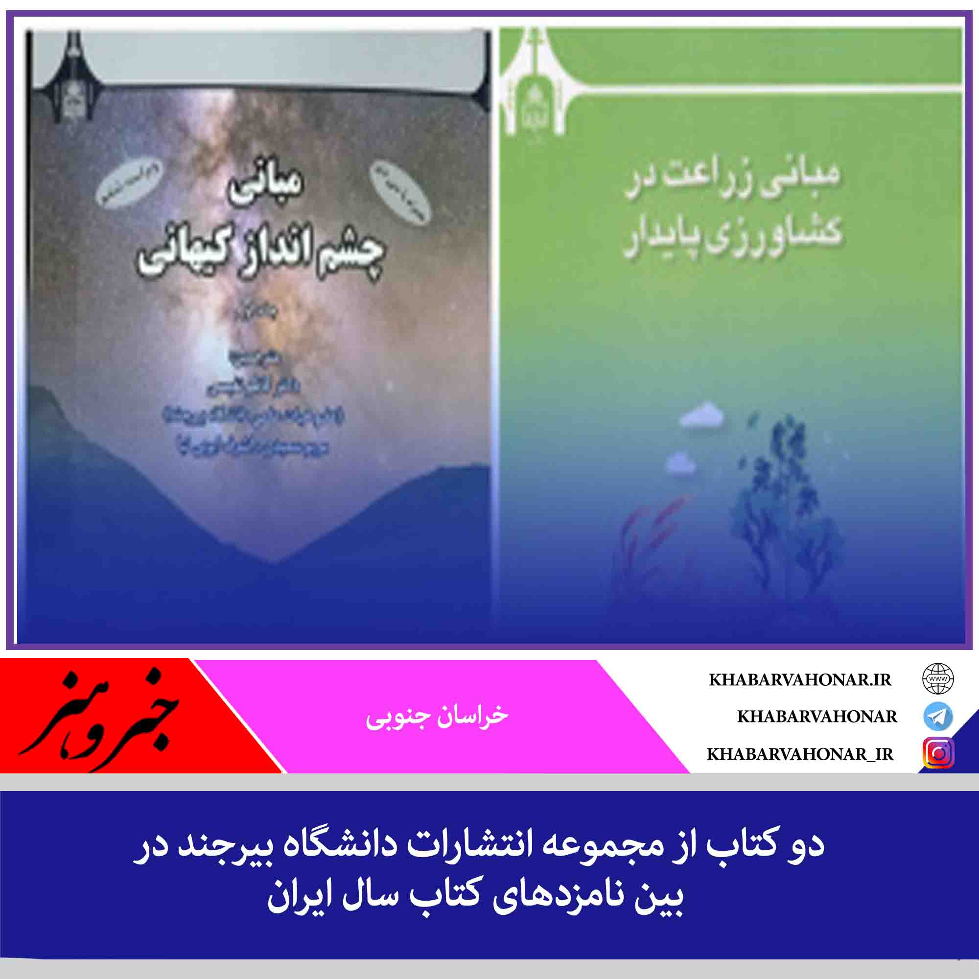 دو کتاب از مجموعه انتشارات دانشگاه بیرجند در بین نامزدهای سی و هشتمین دوره جایزه کتاب سال جمهوری اسلامی ایران در گروههای «علوم خالص» و «علوم کاربردی» قرار گرفت.