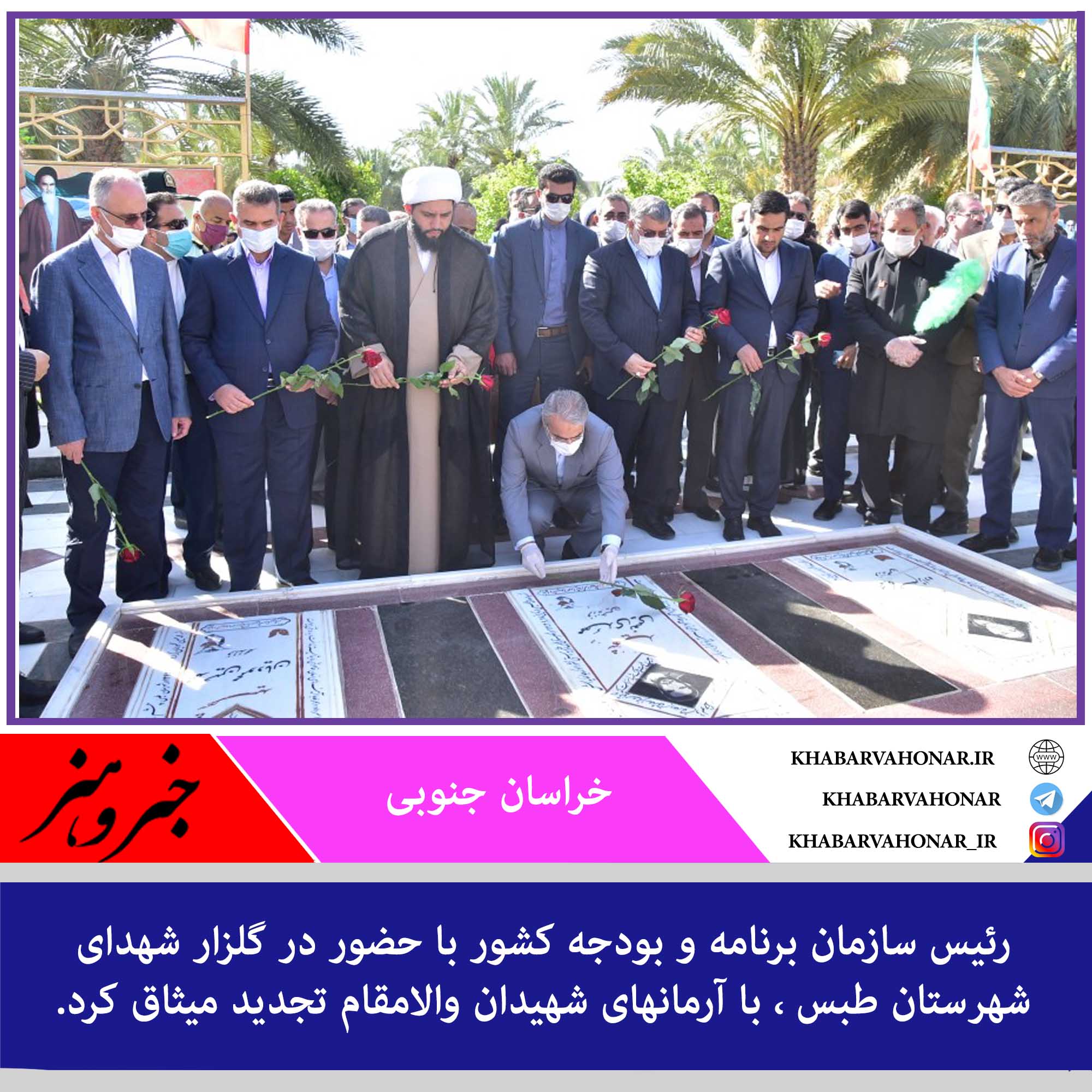 دکتر نوبخت رئیس سازمان برنامه و بودجه کشور ، محمد صادق معتمدیان استاندار خراسان جنوبی و جمعی از مسئولان استان با حضور در گلزار شهدای شهرستان طبس با آرمانهای شهیدان والامقام تجدید میثاق کردند