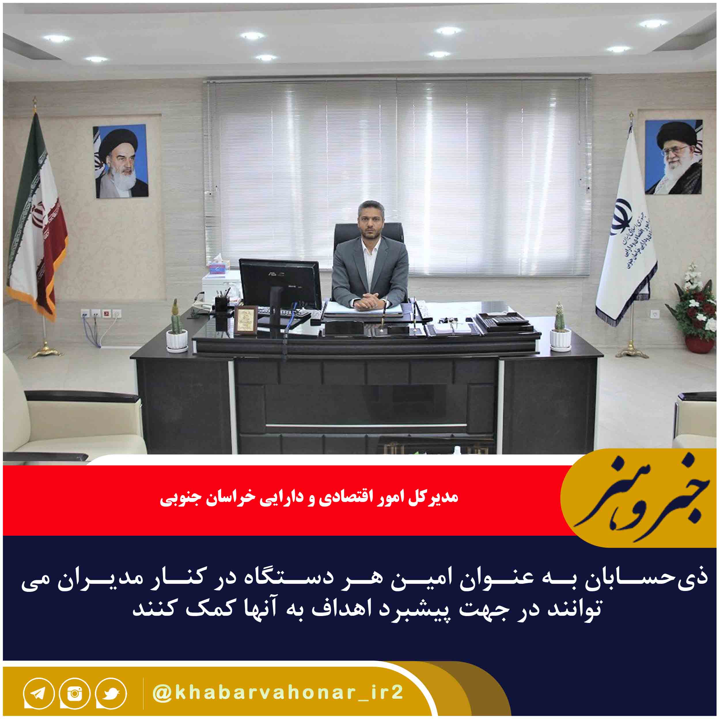 مدیرکل امور اقتصادی و دارایی خراسان جنوبی گفت: ذیحسابان به عنوان امین هر دستگاه در کنار مدیران میتوانند در جهت پیشبرد اهداف به آنها کمک کنند.