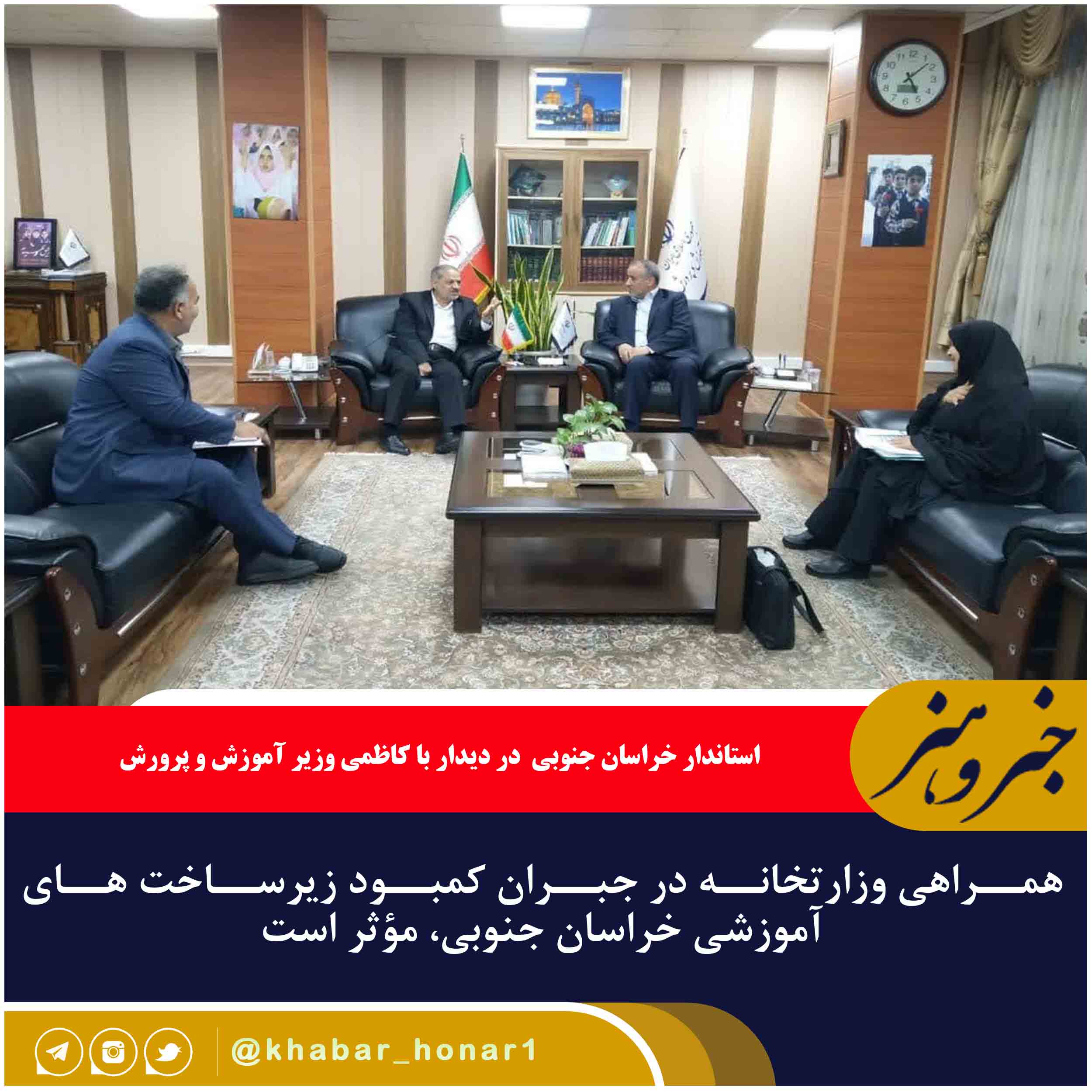 🔹استاندار خراسان جنوبی گفت: همراهی وزارتخانه در جبران کمبود زیرساخت های آموزشی خراسان جنوبی، مؤثر است.