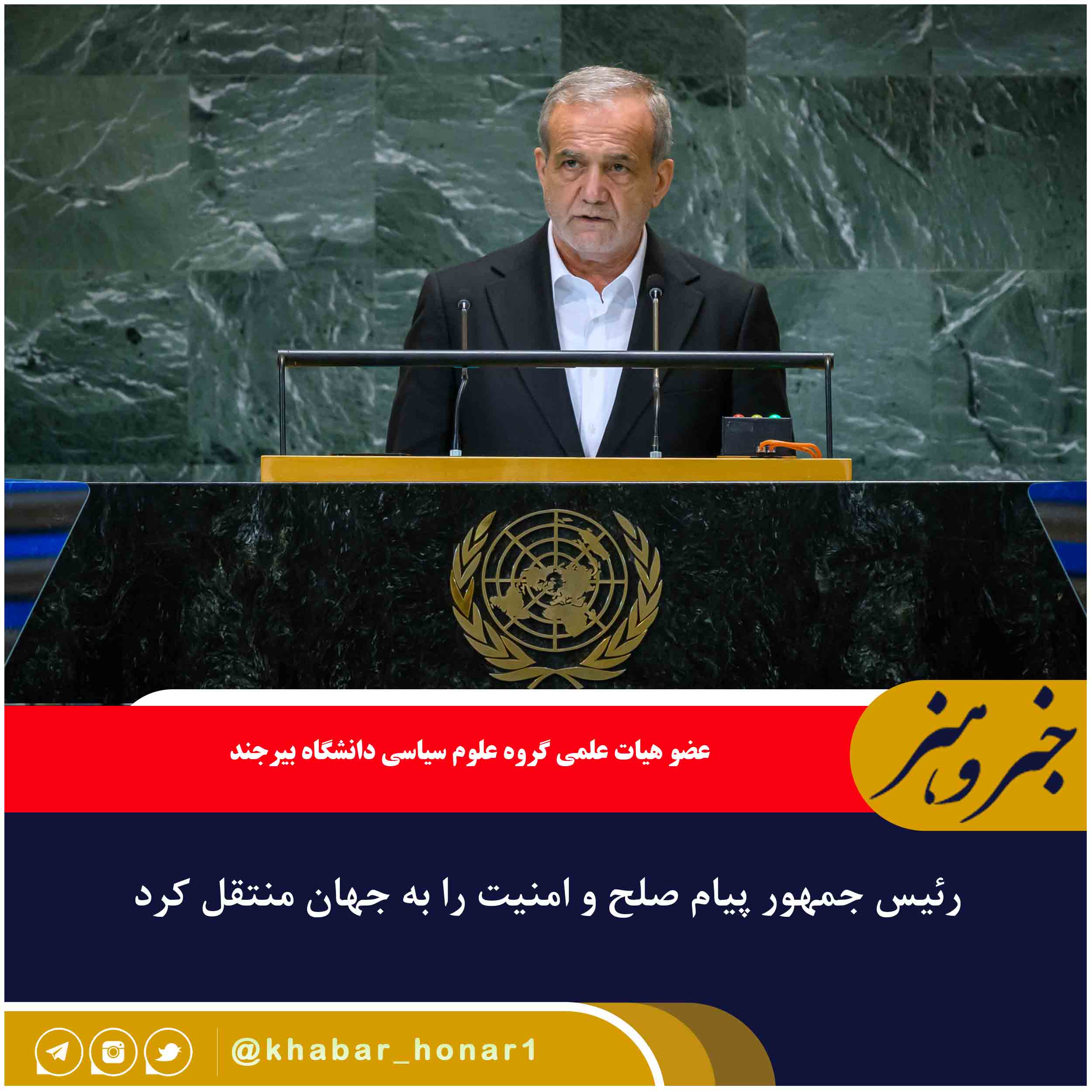 عضو هیات علمی گروه علوم سیاسی دانشگاه بیرجند گفت: رئیس جمهور با حضور در هفتاد و نهمین نشست مجمع عمومی سازمان ملل، پیام ایران مبنی بر صلح و امنیت را به همه جهان منتقل کرد.