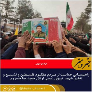 مراسم راهپیمایی حمایت از مردم مظلوم فلسطین و تشییع و تدفین شهید حمیدرضا خسروی با حضور پرشور مردم و مسئولان در بیرجند برگزار شد.