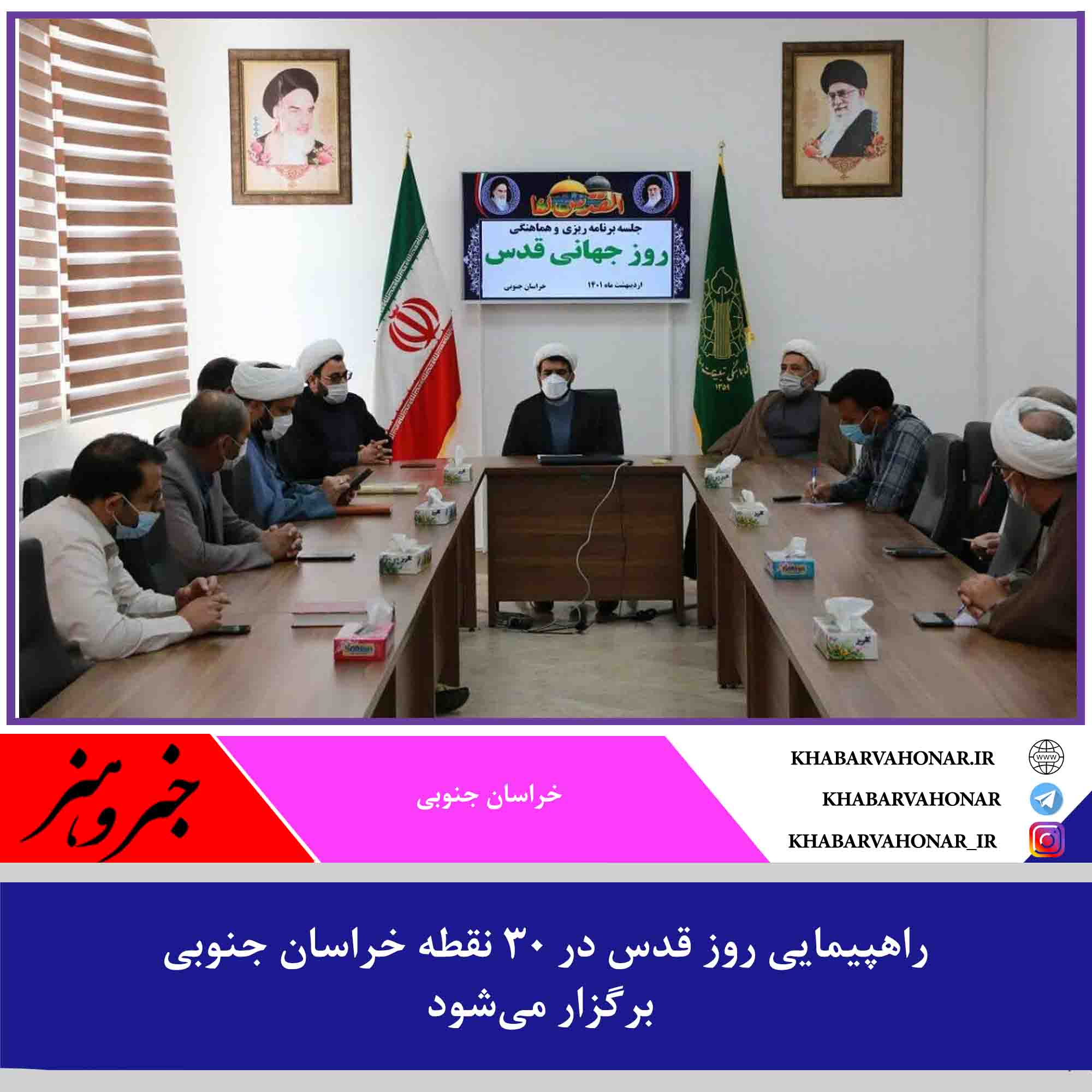 راهپیمایی روز جهانی قدس همزمان با سراسر کشور و آخرین جمعه ماه مبارک رمضان در ۳۰ نقطه استان خراسان جنوبی با حضور مردم برگزار میشود.