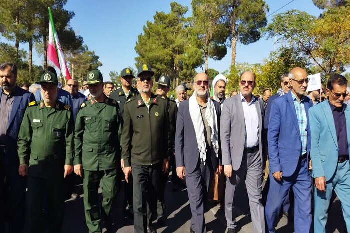 مسیر پایانی راهپیمایی ۱۳ آبان میدان قدس بیرجند و سردار رسول سناییراد، معاون دفتر عقیدتی سیاسی فرماندهی معظم کل قوا سخنران این مراسم است.