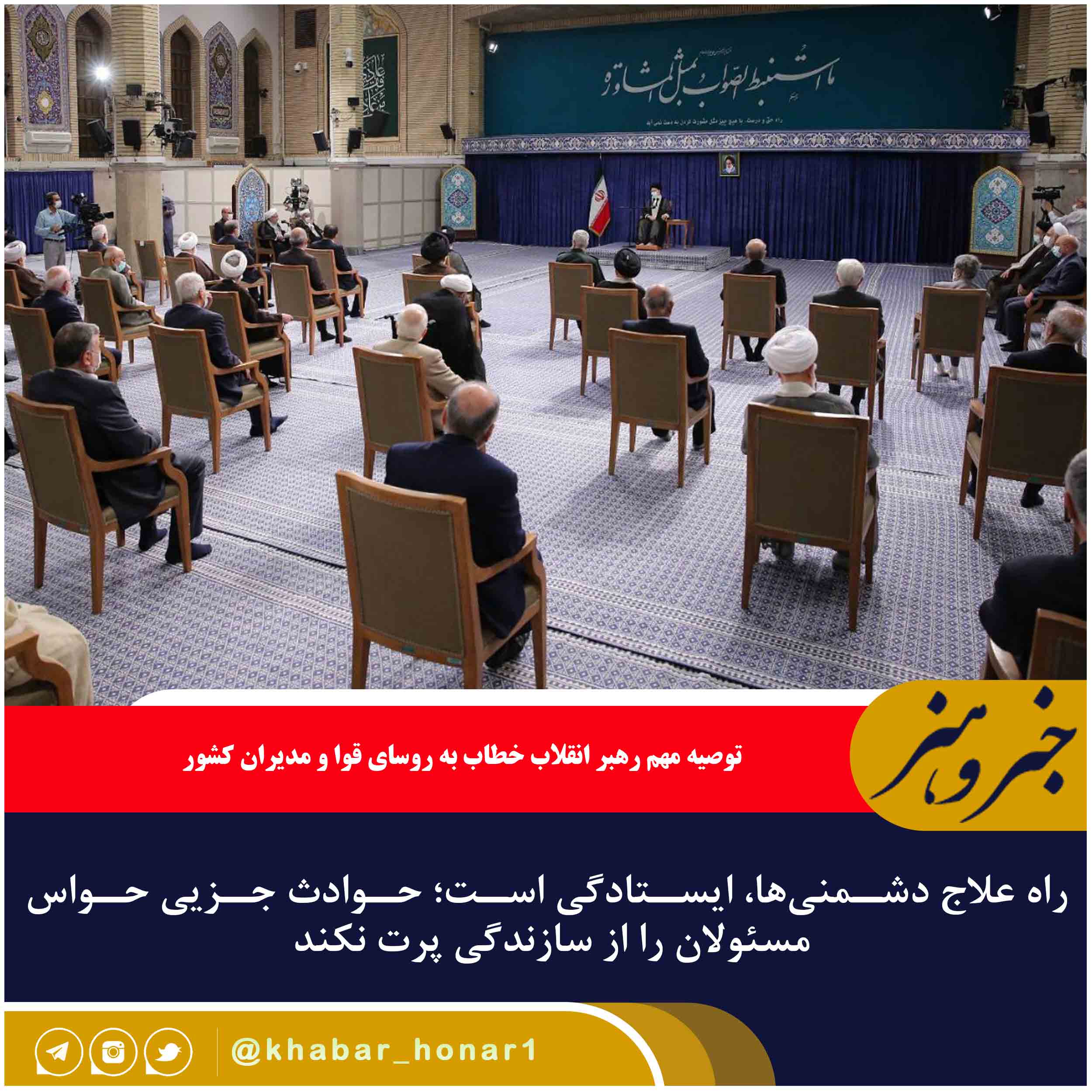 حضرت آیت الله خامنه ای یک توصیه نیز به مسئولان کشور کردند و گفتند: مراقب باشید این مسائل حواس شما را پرت نکند و از کارهای اصلی و اساسی باز نمانید.