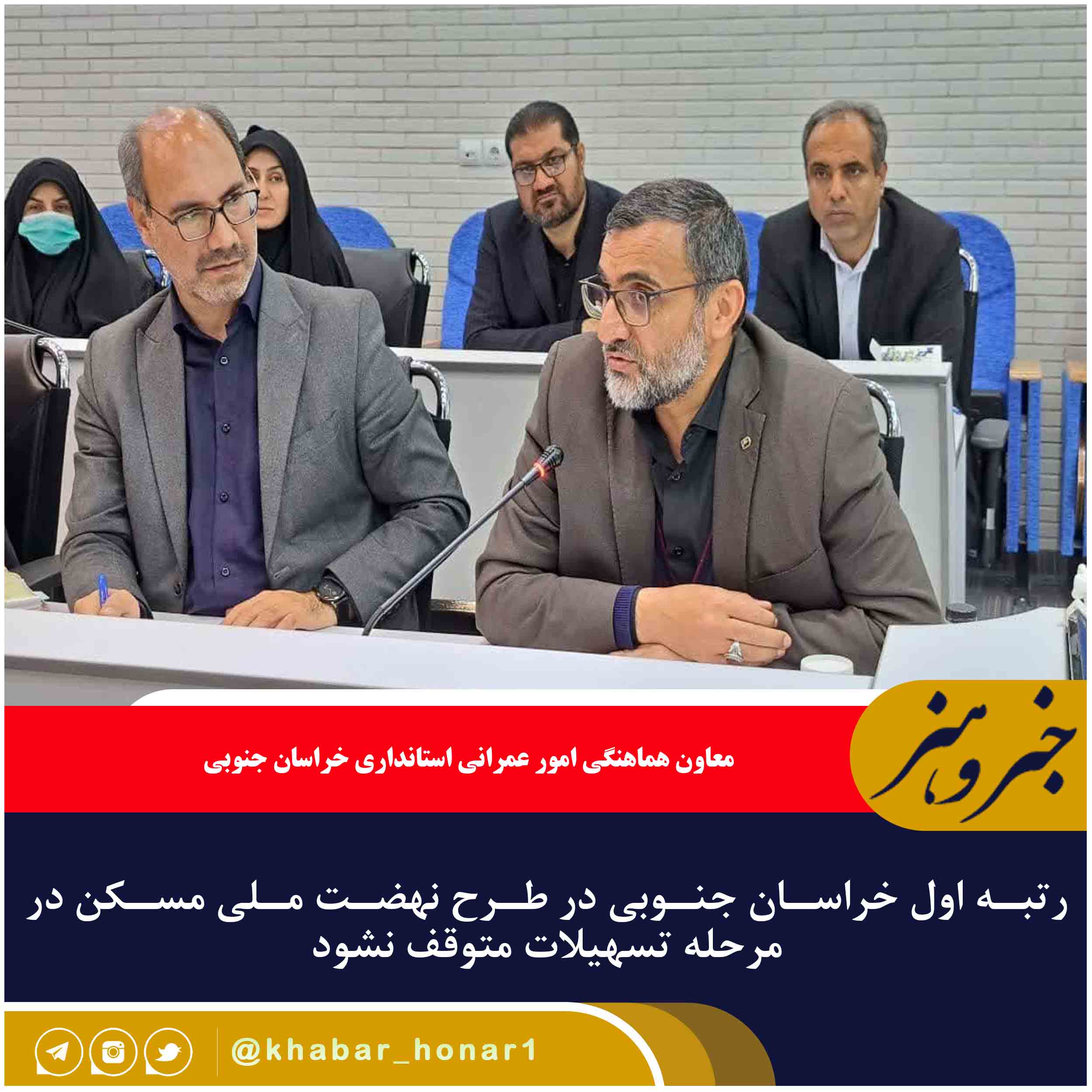 ?معاون هماهنگی امور عمرانی استانداری خراسان جنوبی گفت: رتبه استان خراسان جنوبی در اجرای موفق طرح نهضت ملی مسکن، نباید در مرحله تسهیلات متوقف شود.