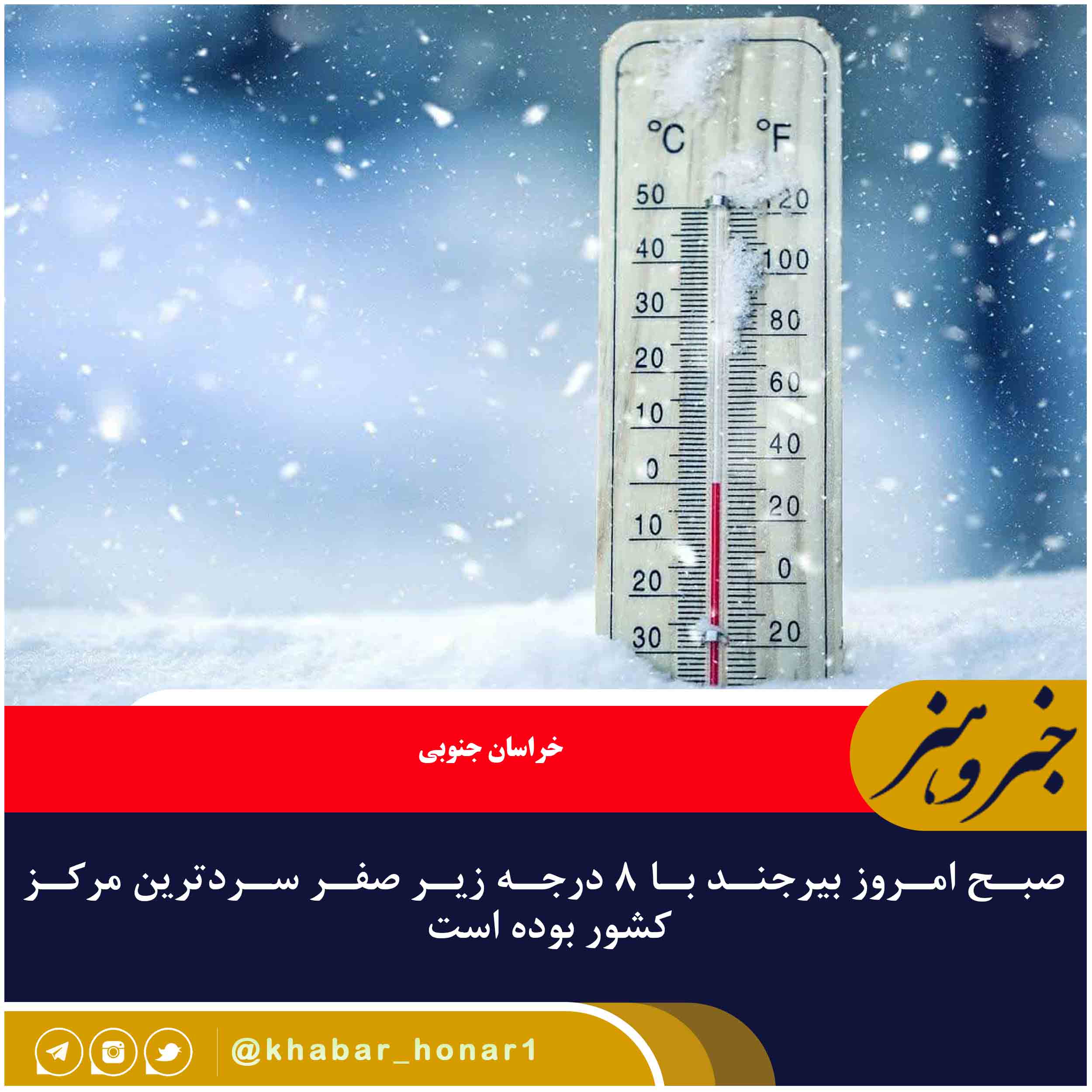 ?کارشناس هواشناسی خراسان جنوبی اظهار کرد: صبح امروز بیرجند با ۸ درجه زیر صفر سردترین مرکز کشور بوده است.
