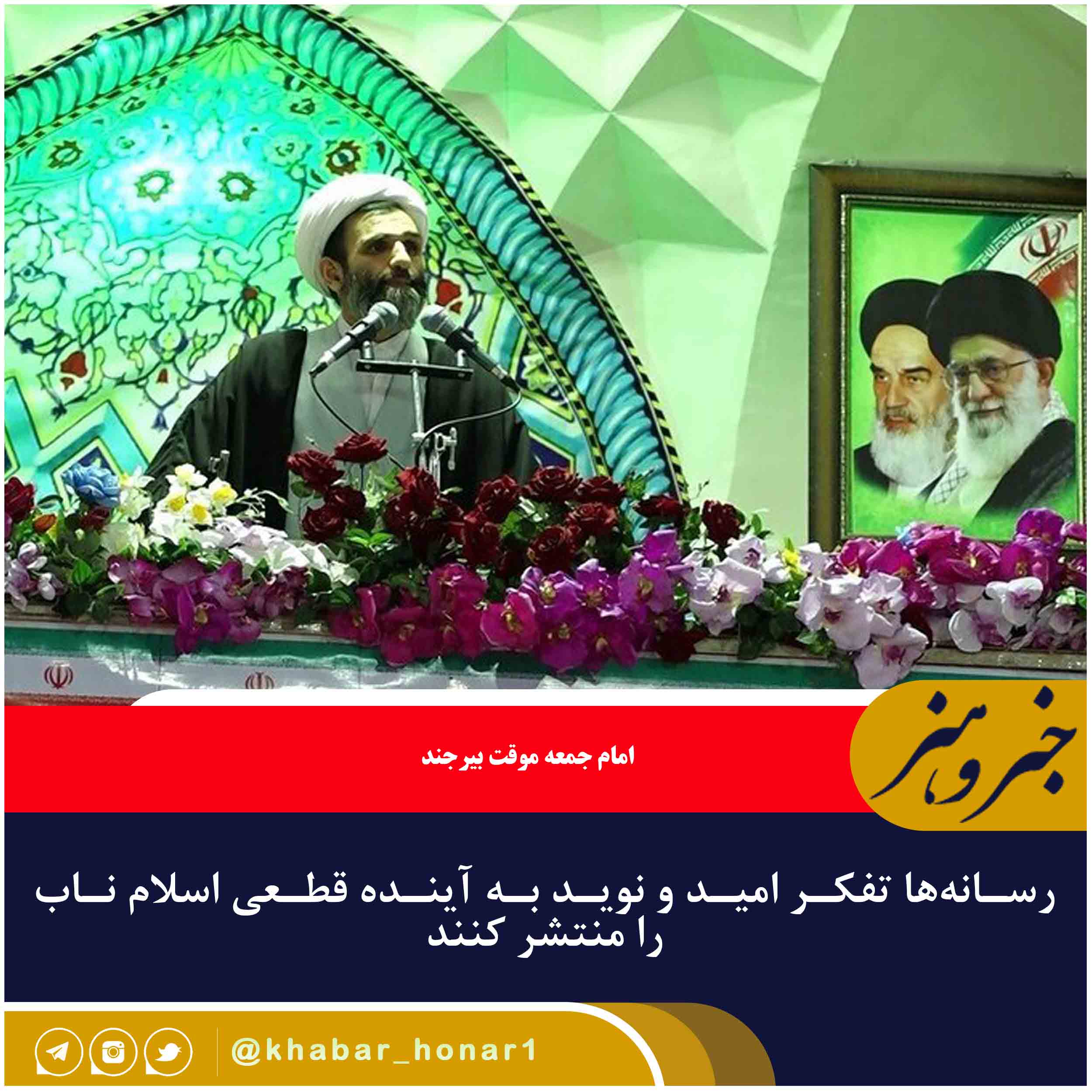 خطیب جمعه موقت بیرجند در ادامه متذکر شد: دشمن با ابزار رسانهای به دنبال سیاهنمایی در ایران اسلامی است تا مردم ناامید شوند اما به لطف الهی و برکت خون شهدا میبینیم که دشمن و رژیم پلید صهیونیستی در سراشیبی شدید نابودی قرار گرفته است و قوم سلمان فارسی پرچم آل محمد (ص) را در قدس به اهتزار در خواهد آورد که تحقق آن در گرو بصیرت، مقاومت و ولایتمداری است.