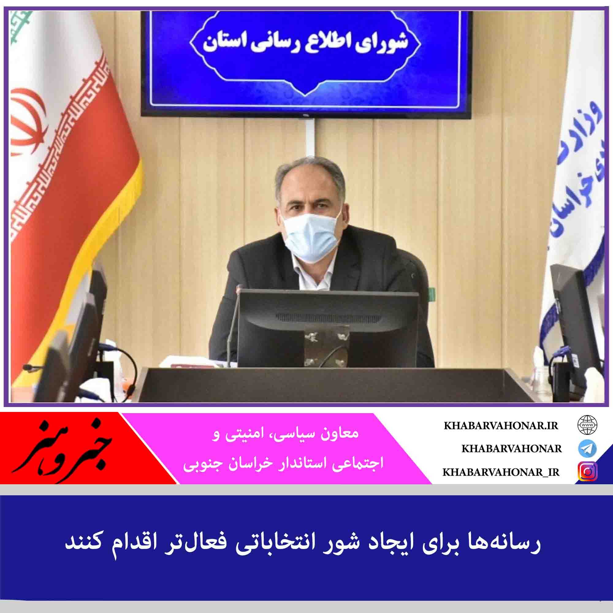 معاون سیاسی، امنیتی و اجتماعی استاندار خراسان جنوبی گفت: رسانهها باید برای آگاهیرسانی، ایجاد شور و نشاط انتخاباتی و اطلاعرسانی برنامههای انتخابات به مردم، فعالتر از گذشته در سطح استان اقدام کنند.