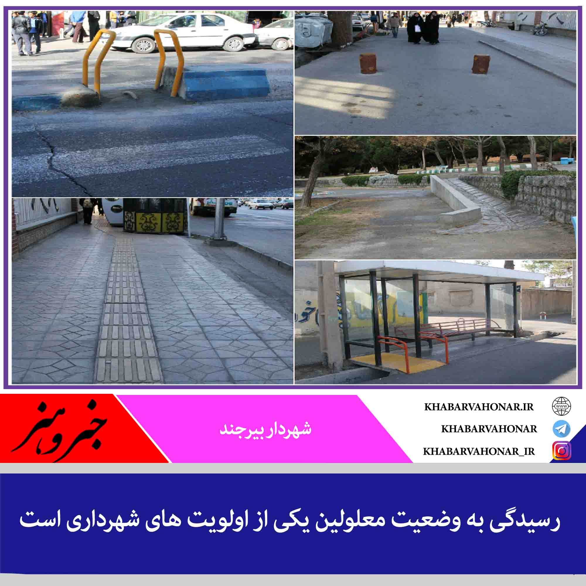 شهردار بیرجند با اشاره به ابلاغ کلیه ضوابط مناسب سازی به شهرداری های مناطق اذعان داشت: اجرای بوستان دوستدار معلول ( پارک محبت در سایت اداری)، اجرای بیش از ۴۰۰ بولارد در سطح شهر و بیش از ۱۵ کیلومتر راه بصیر با موزائیک مخصوص، از دیگر اقدامات شهرداری برای معلولین می باشد.