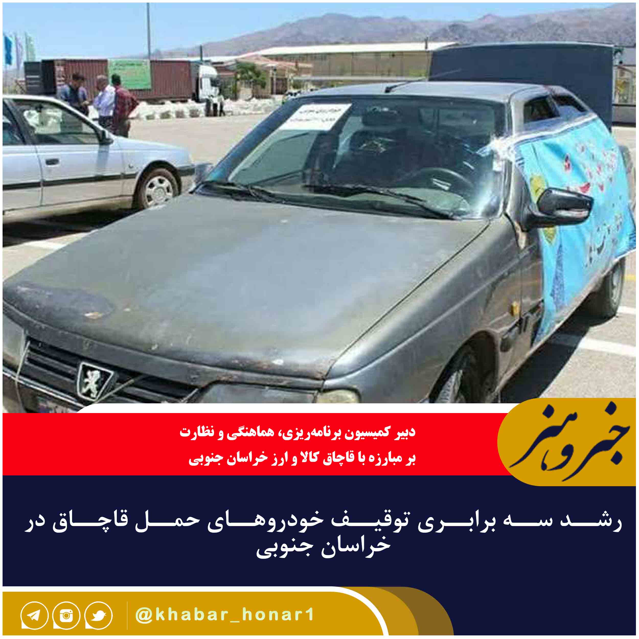 دبیر کمیسیون برنامهریزی، هماهنگی و نظارت بر مبارزه با قاچاق کالا و ارز خراسان جنوبی گفت: از ابتدای امسال ۸۵۶ دستگاه خودرو حامل کالای قاچاق در این استان توقیف شده است که نسبت به مدت مشابه سال قبل ۱۹۳ درصد رشد دارد.