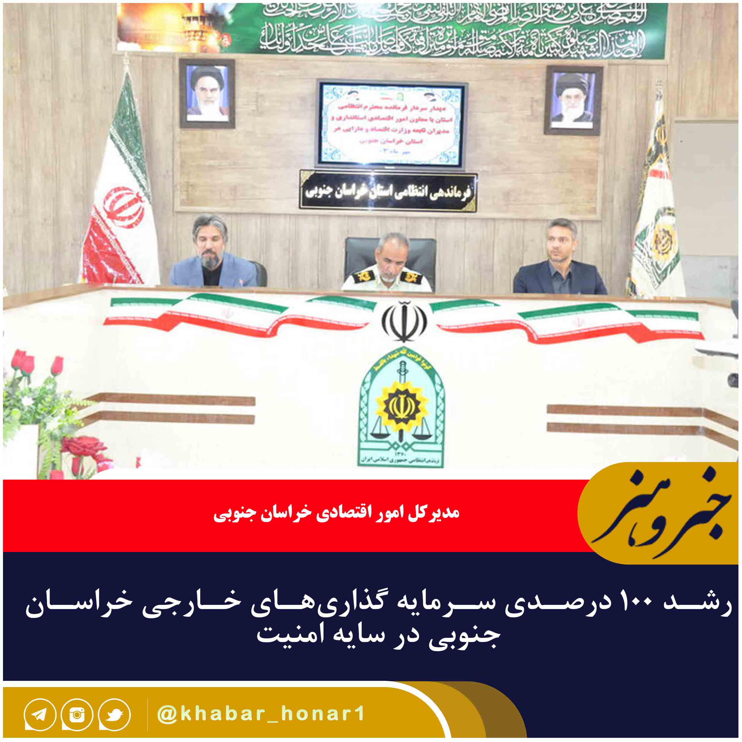 مدیرکل امور اقتصادی خراسان جنوبی یکی از اصلی ترین ذینفعان امنیت را حوزه اقتصاد دانست و گفت:در سایه امنیت پایداری که در استان وجود دارد شاهد رشد ۱۰۰ درصدی سرمایه گذاری خارجی بوده ایم.