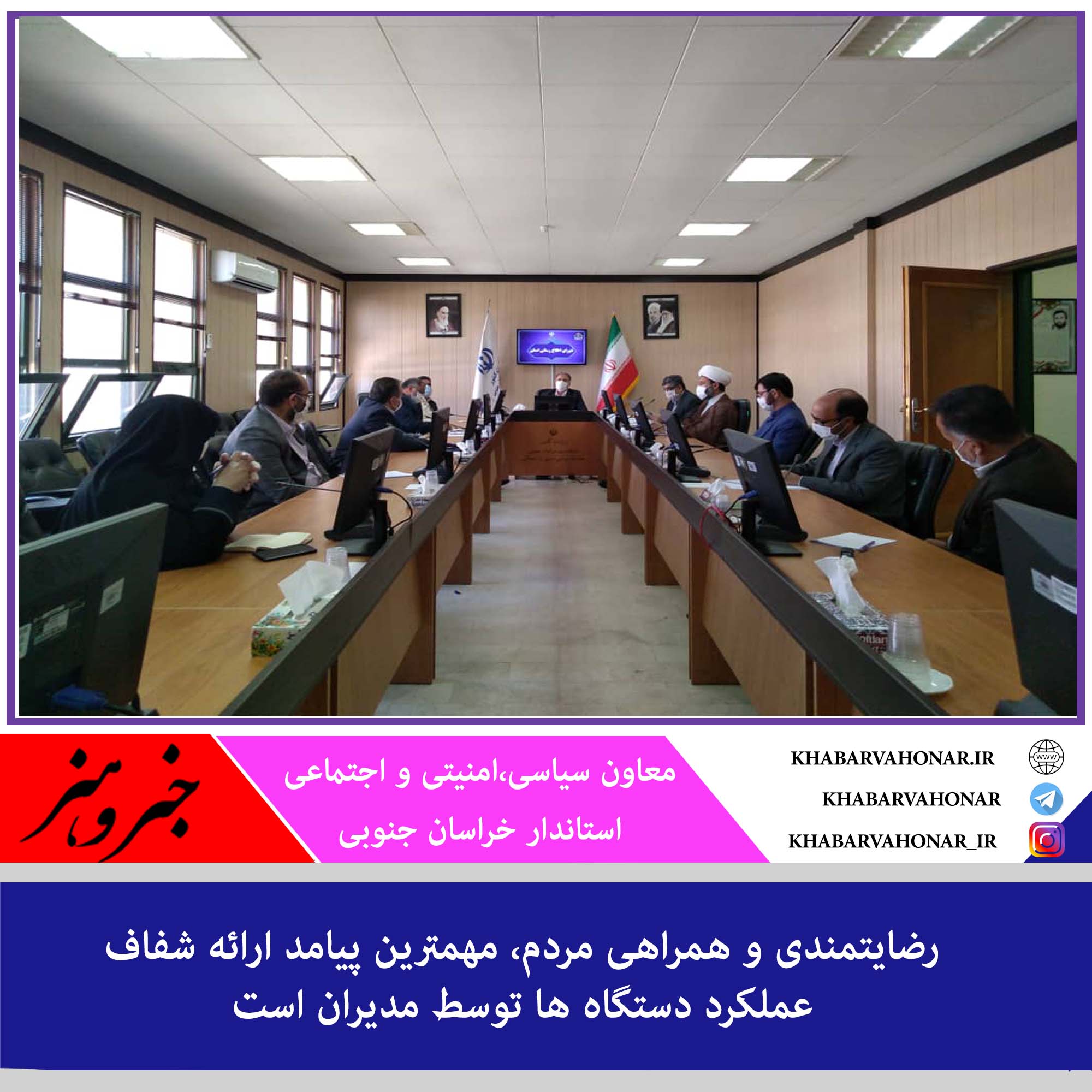 ?معاون سیاسی،امنیتی و اجتماعی استاندار خراسان جنوبی تأکید کرد: رضایتمندی و همراهی مردم، مهمترین پیامد ارائه شفاف عملکرد دستگاه ها توسط مدیران است.