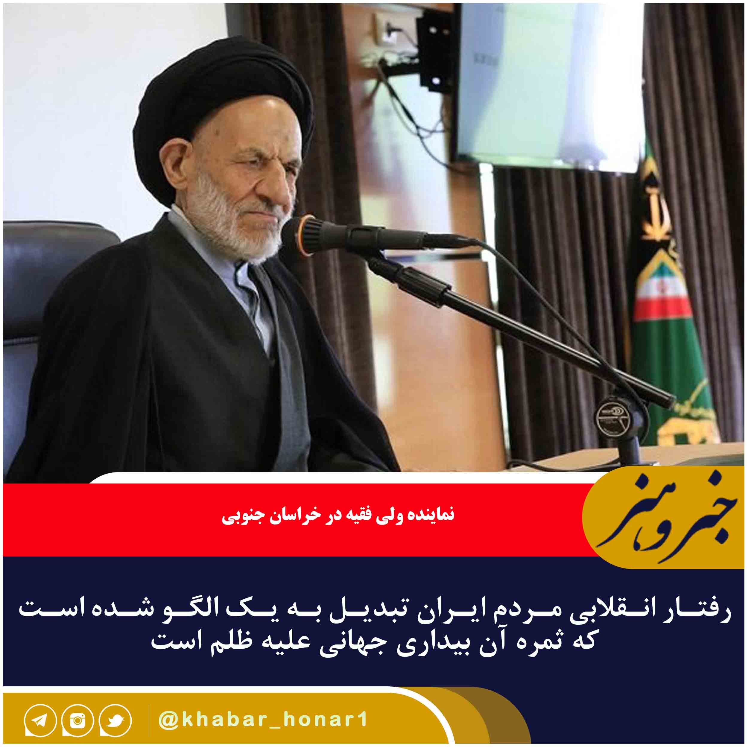نماینده ولی فقیه در خراسان جنوبی گفت: رفتار انقلابی مردم ایران تبدیل به یک الگو شده است که ثمره آن بیداری جهانی علیه ظلم است.