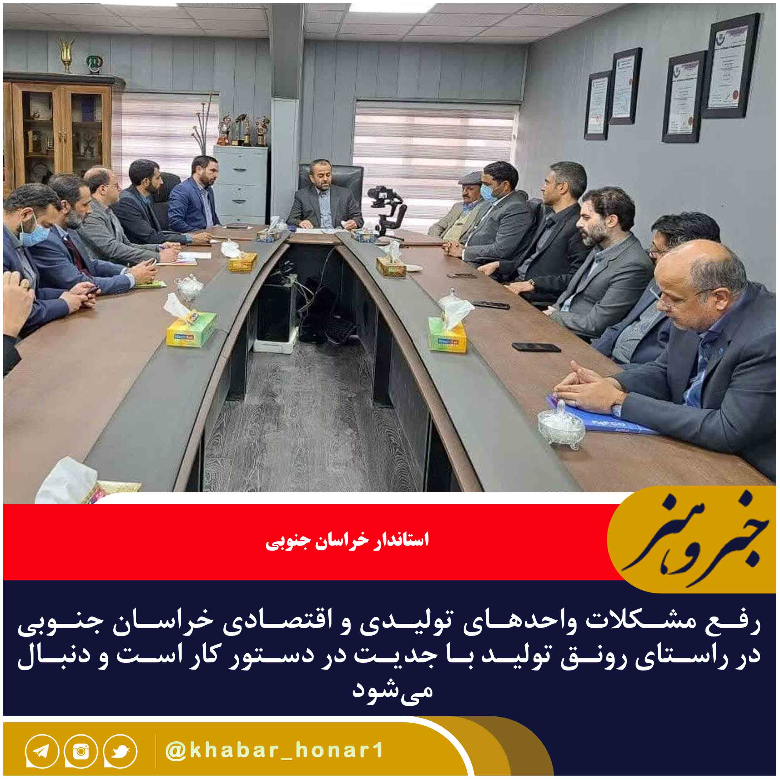 استاندار خراسان جنوبی گفت: رفع مشکلات واحدهای تولیدی و اقتصادی خراسان جنوبی در راستای رونق تولید با جدیت در دستور کار است و دنبال میشود.