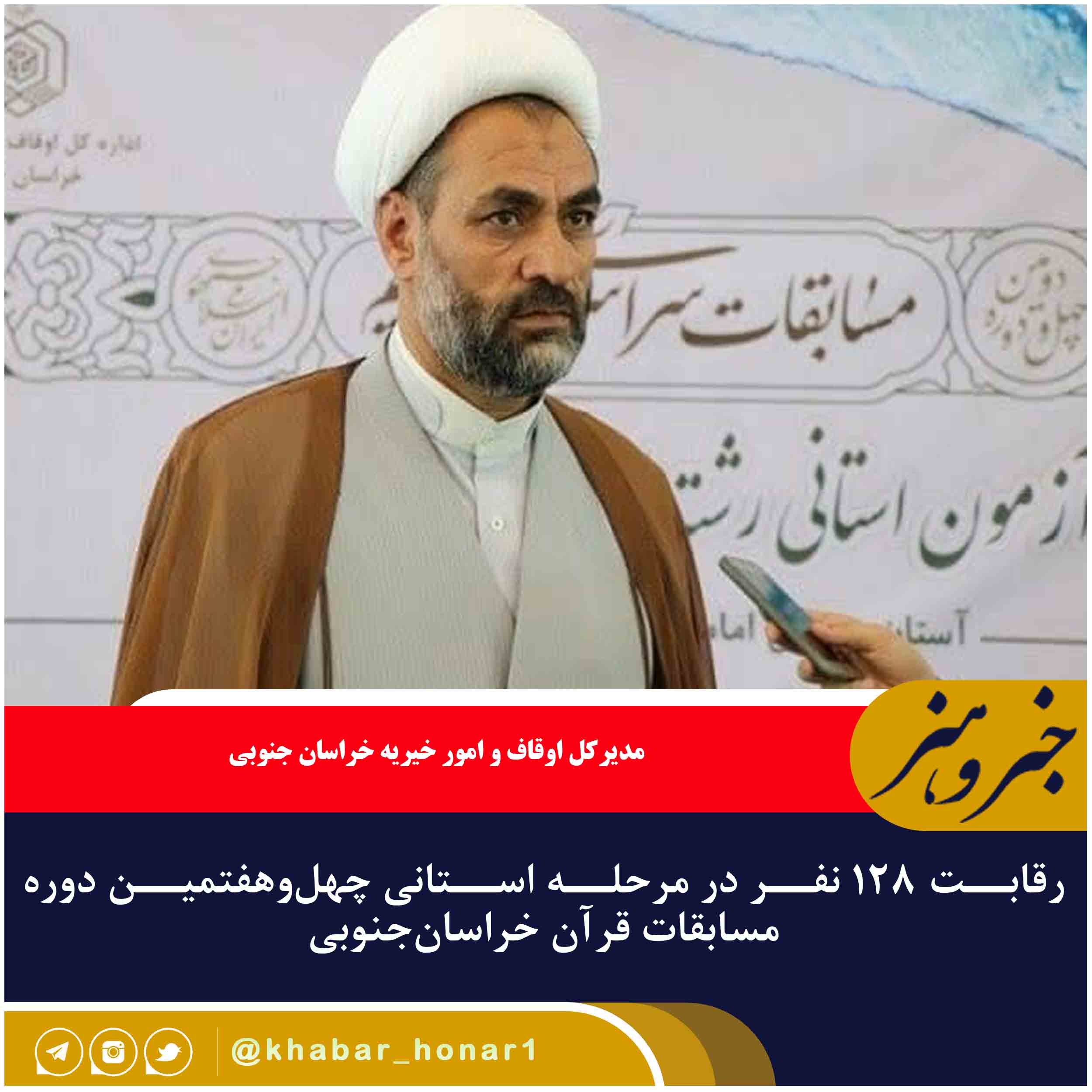 حجتالاسلام والمسلمین پرویز بخشیپور، مدیرکل اوقاف و امور خیریه خراسانجنوبی، در سخنانی گفت: مرحله استانی چهلوهفتمین دوره مسابقات سراسری قرآن کریم همراه با گرامیداشت شهدای خدمت از ۱۹ شهریورماه در مرکز خراسانجنوبی آغاز میشود.وی افزود: در این دوره از مسابقات بیش از یک هزار و ۶۰۰ نخبه، حافظ و قاری ممتاز از شهرستانهای مختلف خراسانجنوبی در دو بخش آوایی(رشتههای حفظ ۵ جزء، ۱۰ جزء، ۲۰ جزء، حفظ کل قرآن کریم، قرائت تحقیق، ترتیل، اذان و دعا خوانی) و بخش معارفی(رشتههای ترجمه عمومی قرآن، تفسیر عمومی قرآن کریم، معارف نهجالبلاغه و معارف صحیفه سجادیه) ثبتنام کردند.