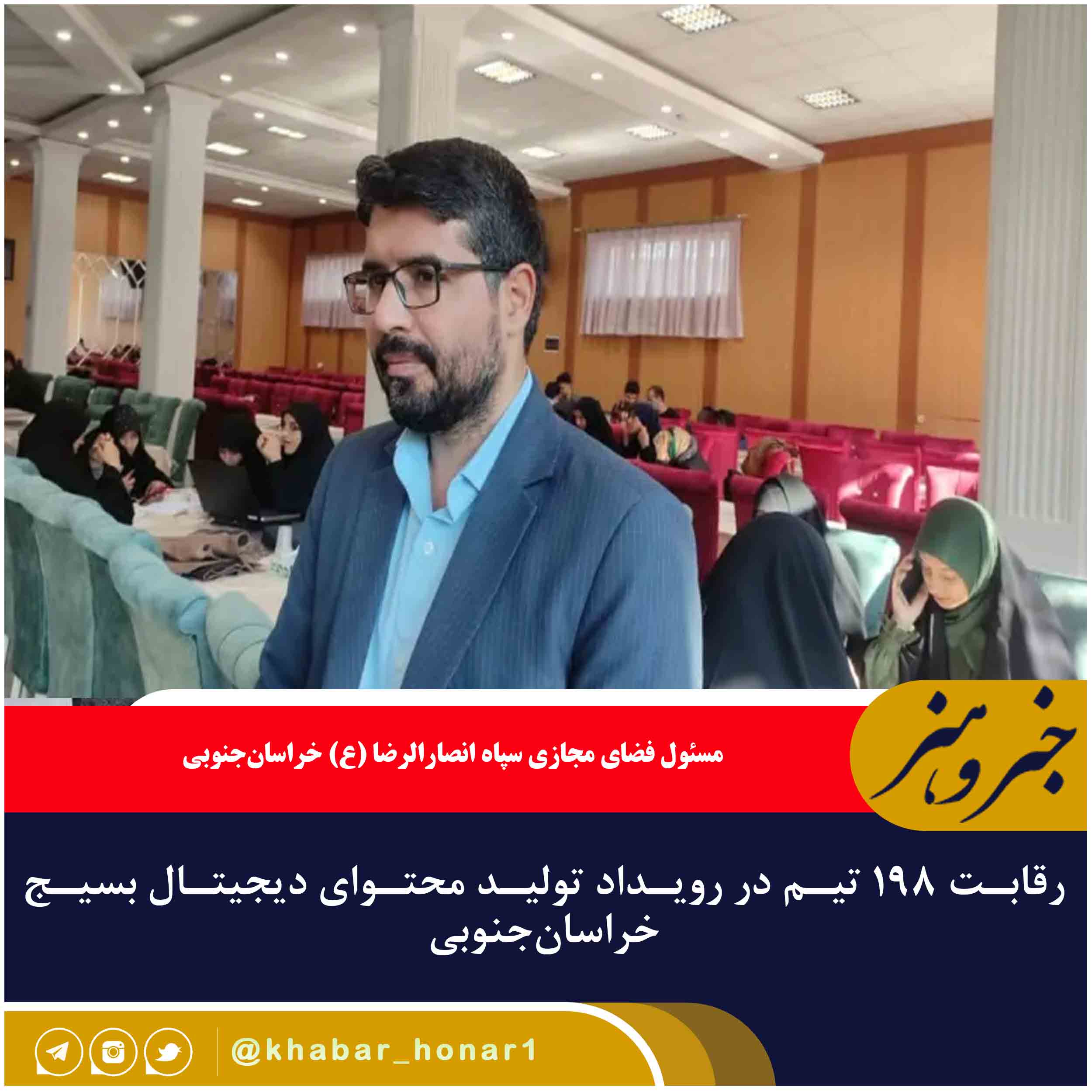مسئول فضای مجازی سپاه انصارالرضا (ع) خراسانجنوبی ادامه داد: این رویداد با هدف شناسایی استعداهای برتر حوزه فضای مجازی و تولید محتوا، حمایت از تیمهای تولید محتوا برتر و همچنین هدایت و اثربخشی ویژهتری بر روی تولید محتوای بسیج و فضایی مجازی در حال برگزاری است.