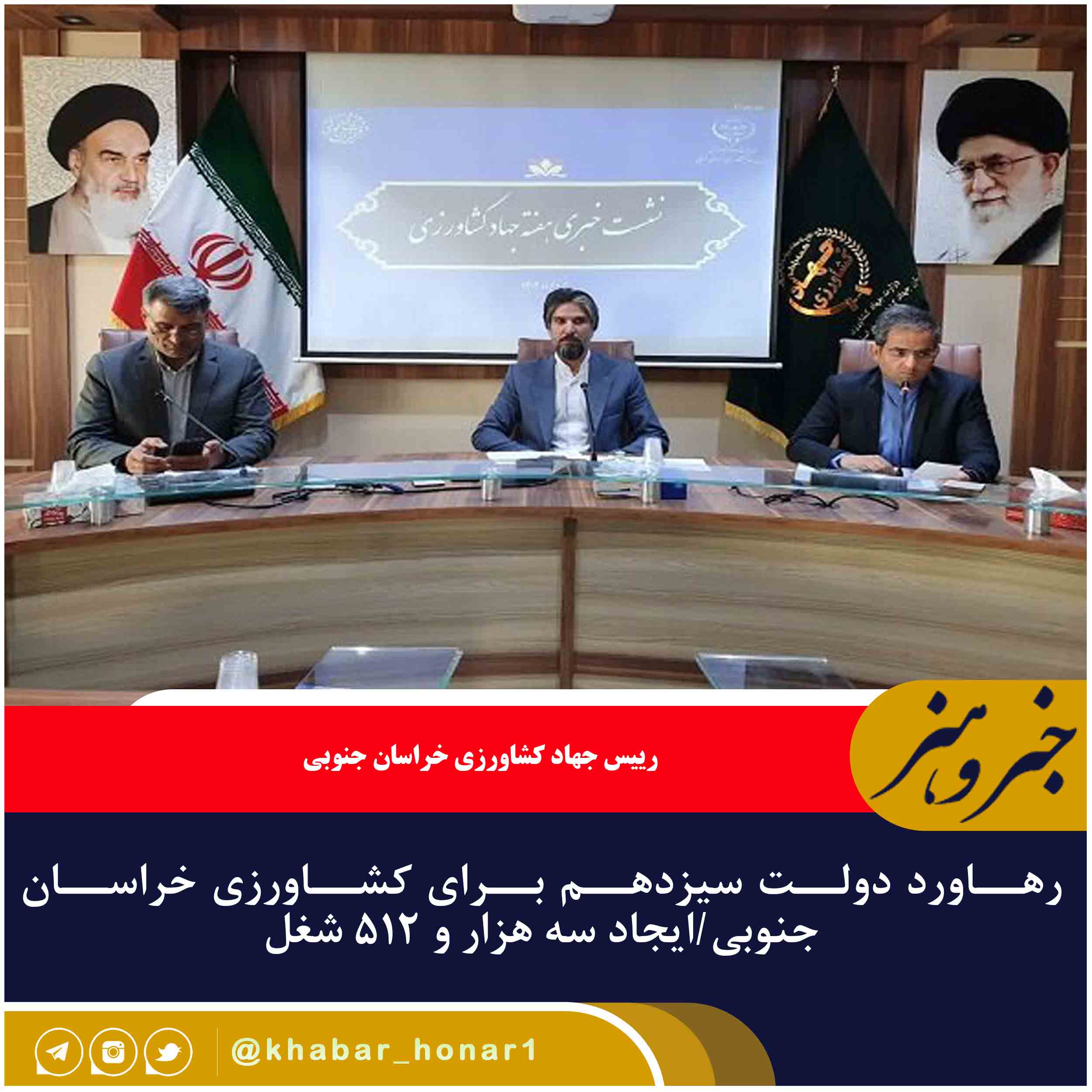 رییس جهاد کشاورزی خراسان جنوبی گفت: از ابتدای دولت سیزدهم سه هزار و ۵۱۲ فرصت شغلی در بخش کشاورزی خراسان جنوبی ایجاد شده است.