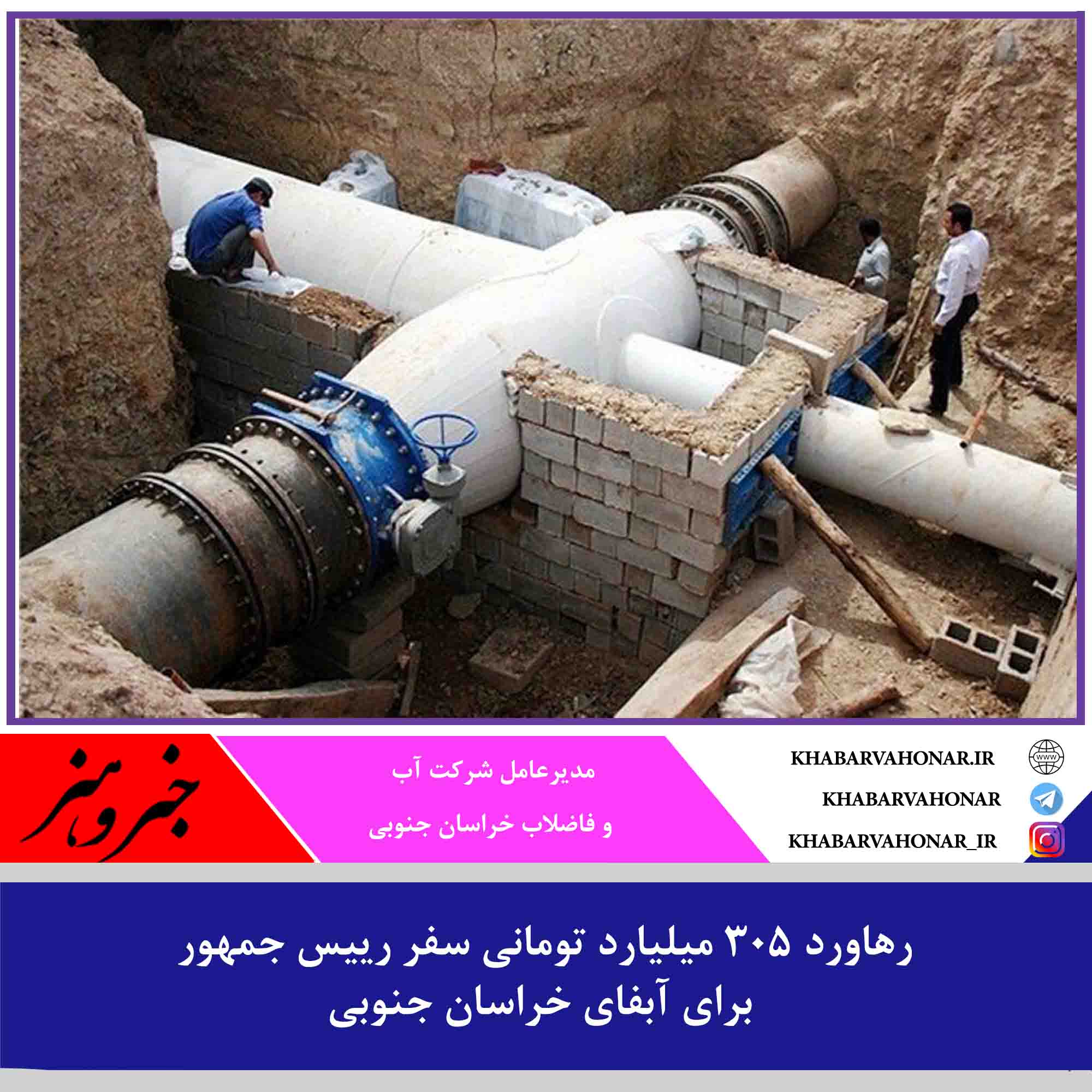 مدیرعامل شرکت آب و فاضلاب خراسان جنوبی گفت: ۳۰۵ میلیارد تومان از محل اعتبارات سفر رییس جمهور تا پایان سال ۱۴۰۲ برای اجرای طرحهای آب و فاضلاب این استان تصویب شده است.