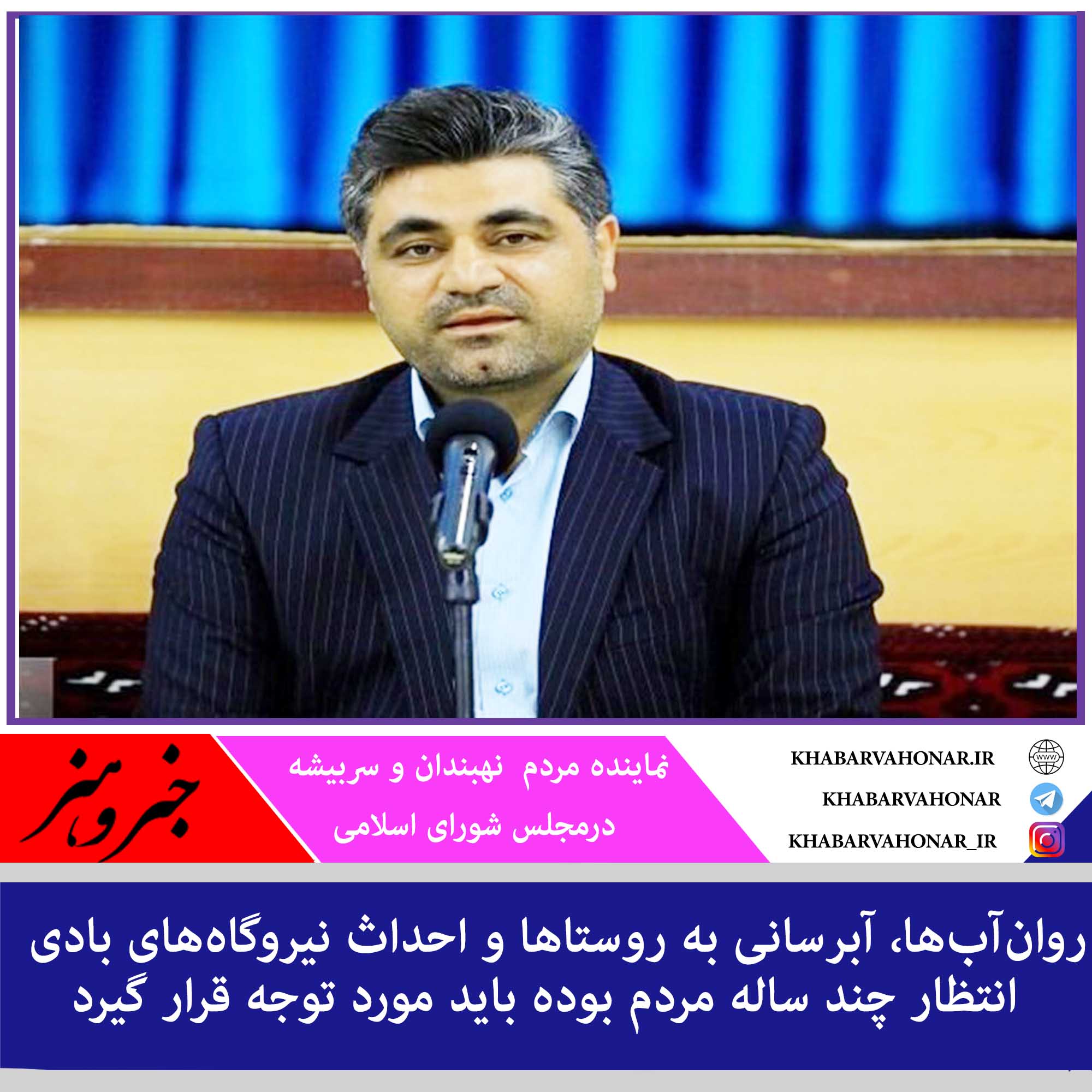 منتخب مردم نهبندان و سربیشه در مجلس شورای اسلامی گفت: مهار روانآبها، آبرسانی به روستاها و احداث نیروگاههای بادی که انتظار چند ساله مردم بوده باید مورد توجه قرار گیرد.