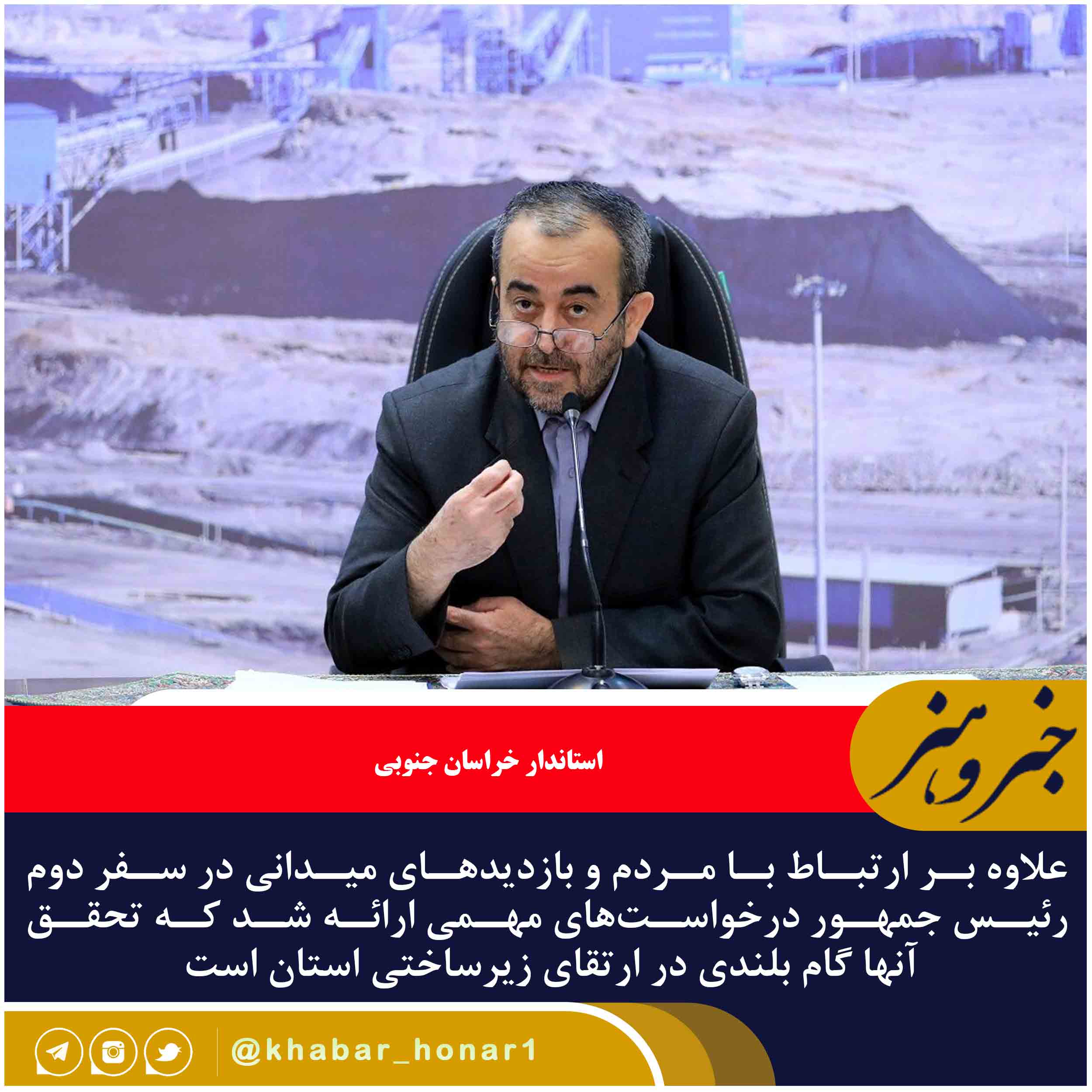 استاندار خراسان جنوبی گفت: علاوه بر ارتباط با مردم و بازدیدهای میدانی در سفر دوم رئیس جمهور درخواستهای مهمی ارائه شد که تحقق آنها گام بلندی در ارتقای زیرساختی استان است.