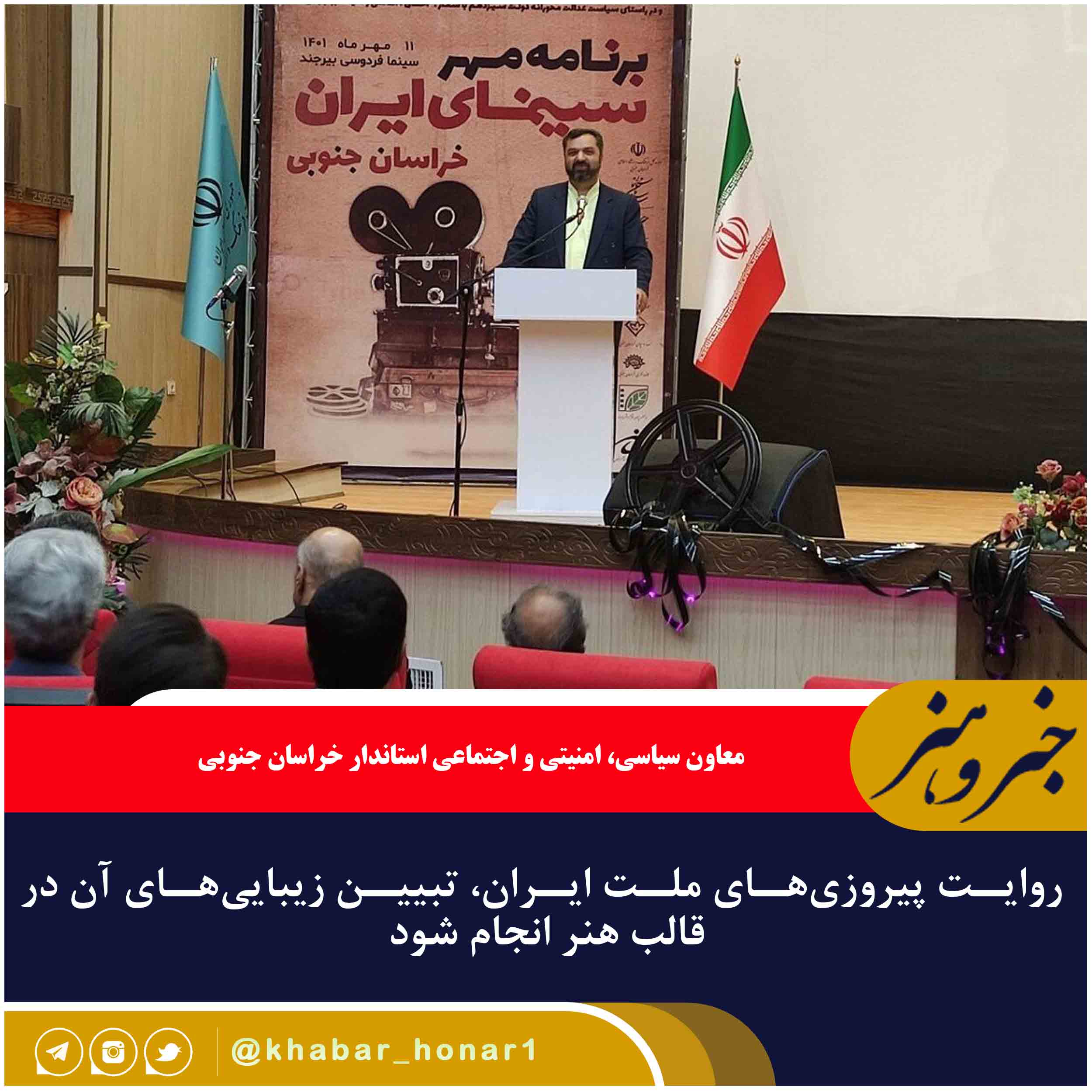 معاون استاندار خراسان جنوبی گفت: هنرمندان باید با بهرهگیری از قالبهای مختلف هنری، زیباییها و دستاوردهای دوران انقلاب و دفاع مقدس را در اذهان مردم برای همیشه ماندگار کنند.