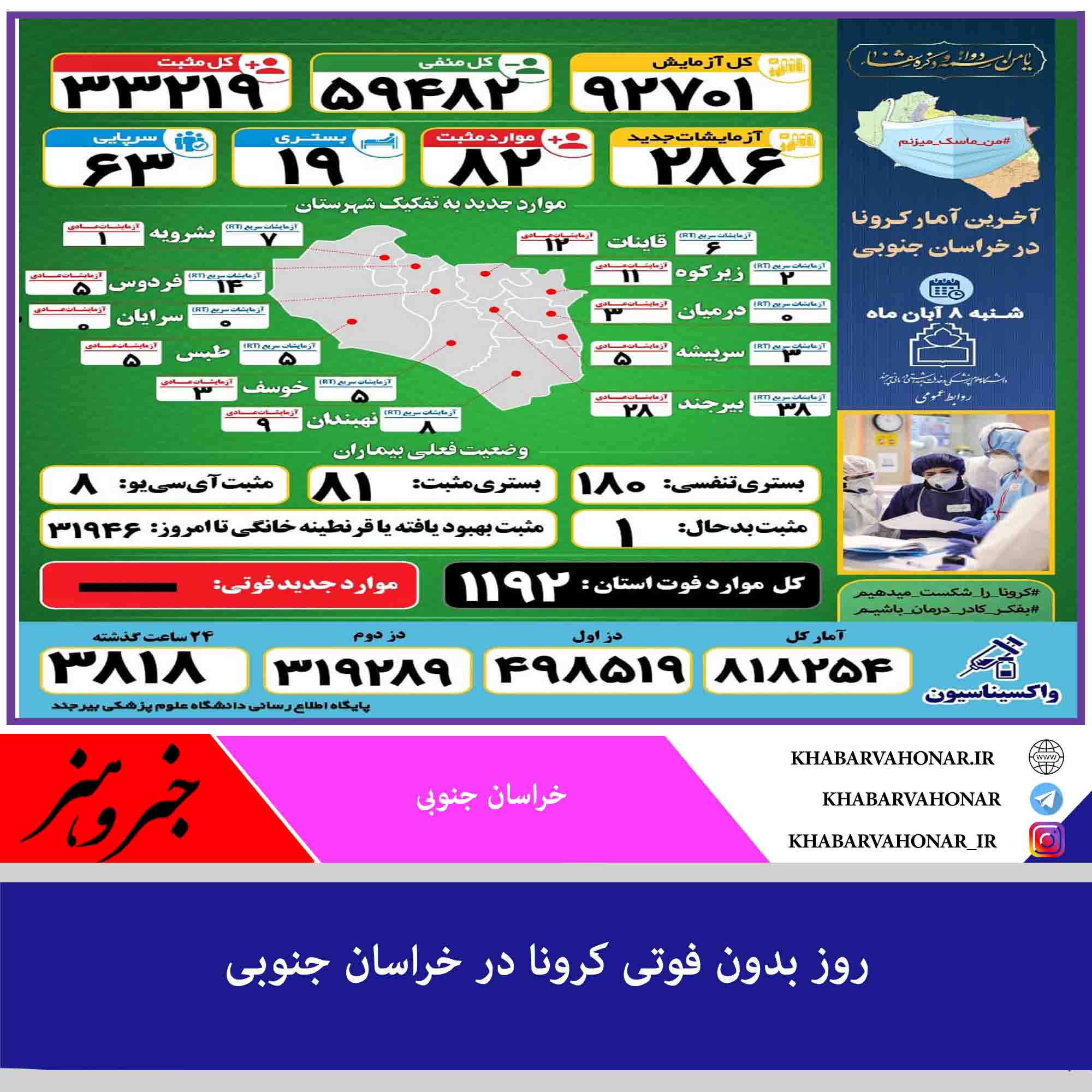 ?در شبانه روز گذشته مورد جدیدی از فوت ناشی از کرونا در استان ثبت نشد و تعداد فوتیهای این بیماری همان هزار و ۱۹۲ نفر باقی ماند.