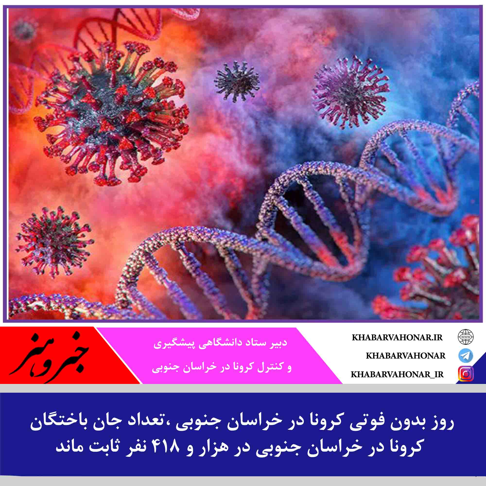 تعداد جان باختگان کرونا در خراسان جنوبی در هزار و ۴۱۸ نفر ثابت ماند.