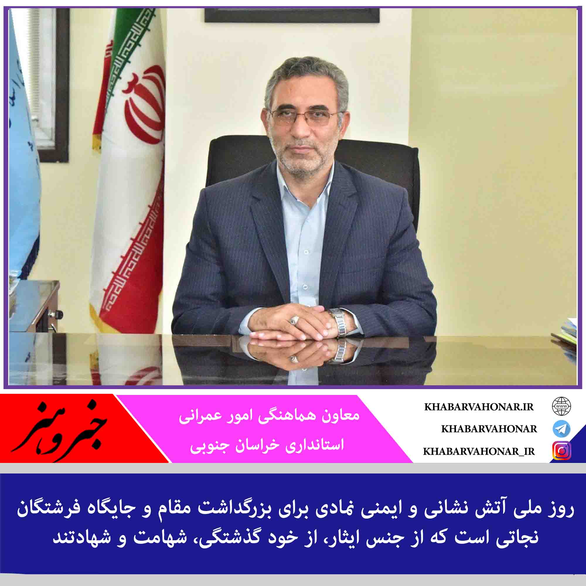 ?پیام معاون هماهنگی امور عمرانی استانداری خراسان جنوبی به مناسبت روز ملی آتش نشانی و ایمنی