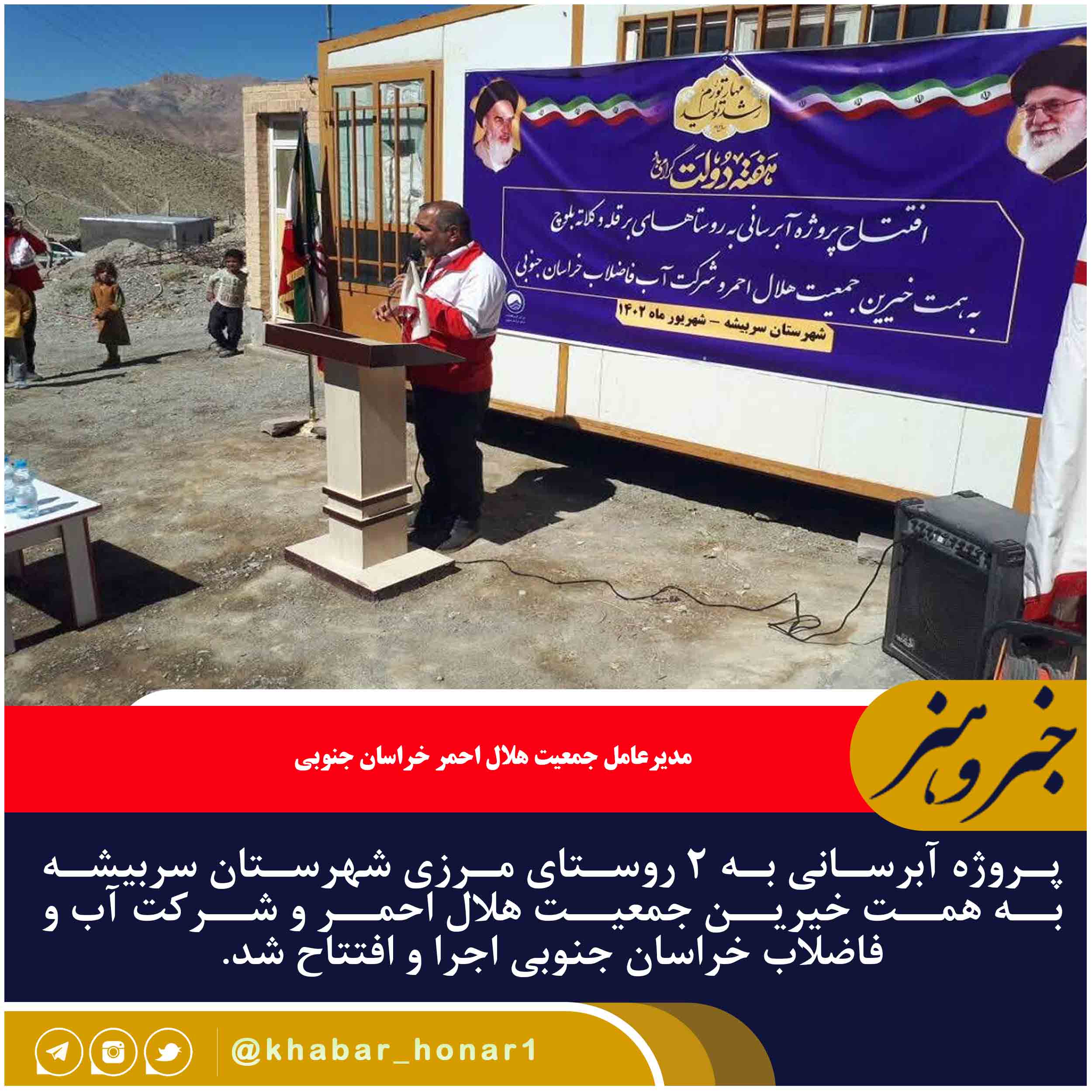 پروژه آبرسانی به ۲ روستای مرزی شهرستان سربیشه به همت خیرین جمعیت هلال احمر و شرکت آب و فاضلاب خراسان جنوبی اجرا و افتتاح شد.