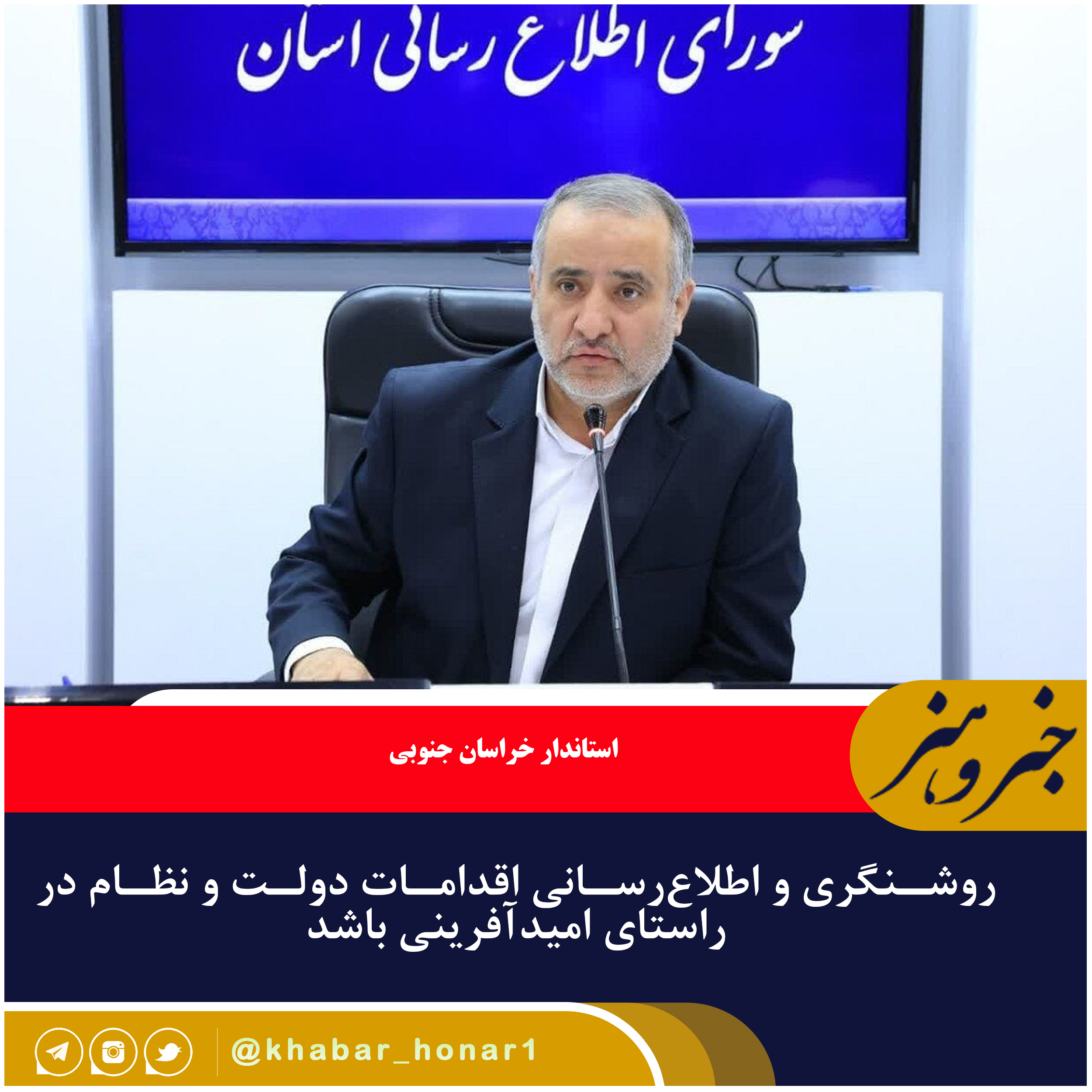– استاندار خراسان جنوبی گفت: شورای اطلاعرسانی ستاد فرماندهی جهاد تبیین است و امروز به واسطه این شورا در خط مقدم جهاد تبیین قرار گرفتهایم.