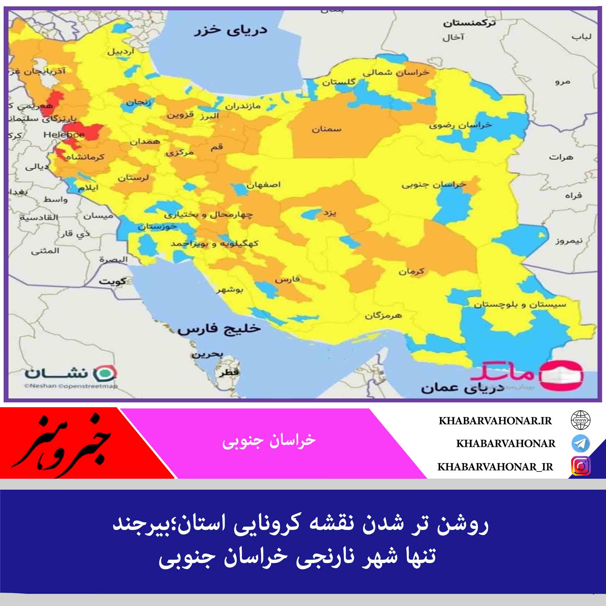 ?بر این اساس تنها شهر نارنجی رنگ استان بیرجند و تنها شهر آبی رنگ نیز خوسف اعلام شده است.