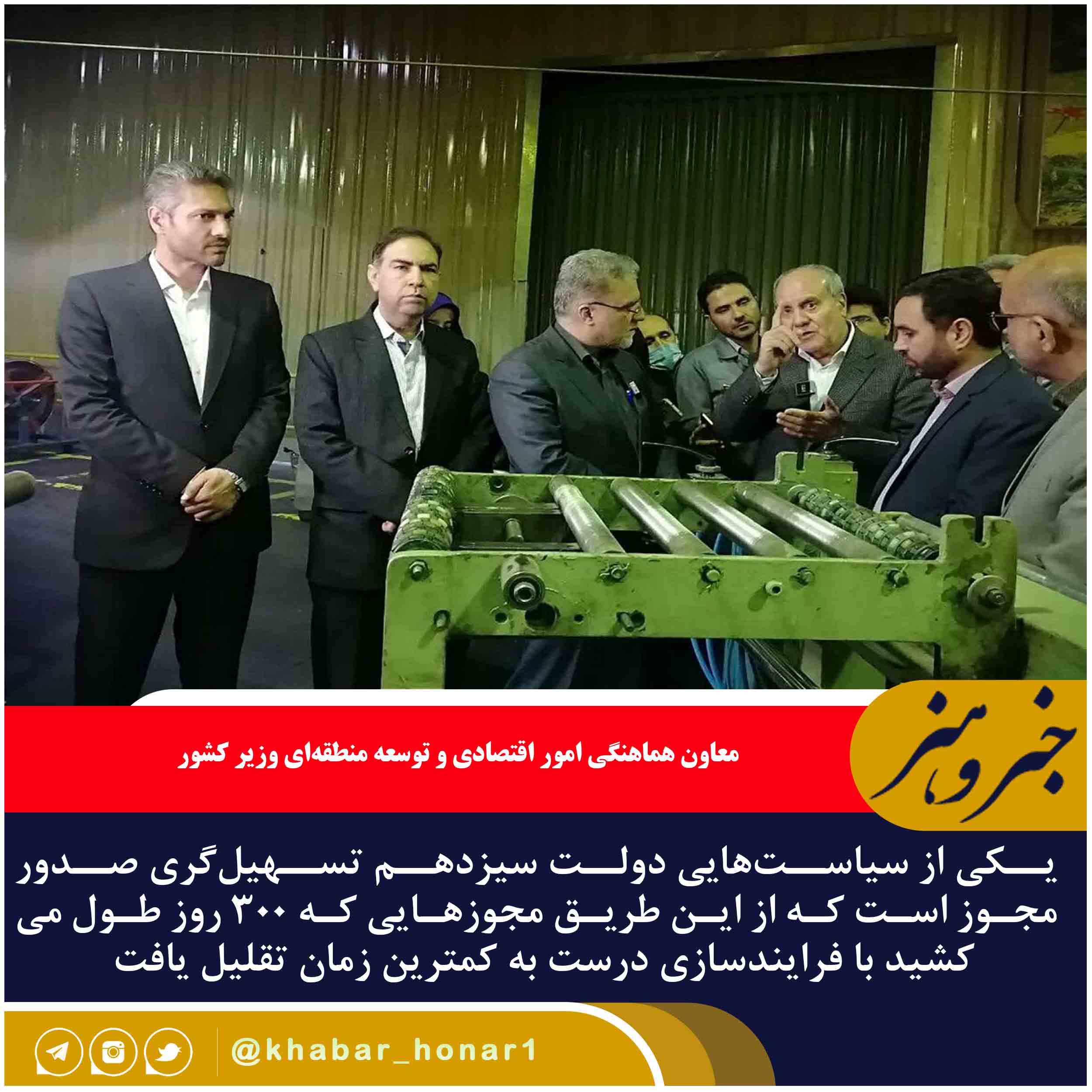 محسن کوششتبار در بازدید از کارخانه کویرتایر بیرجند افزود: همه مجوزها در درگاه ملی صدور مجوز متمرکز شده و در کمترین زمان به منظور حمایت از سرمایهگذاران صادر میشود.