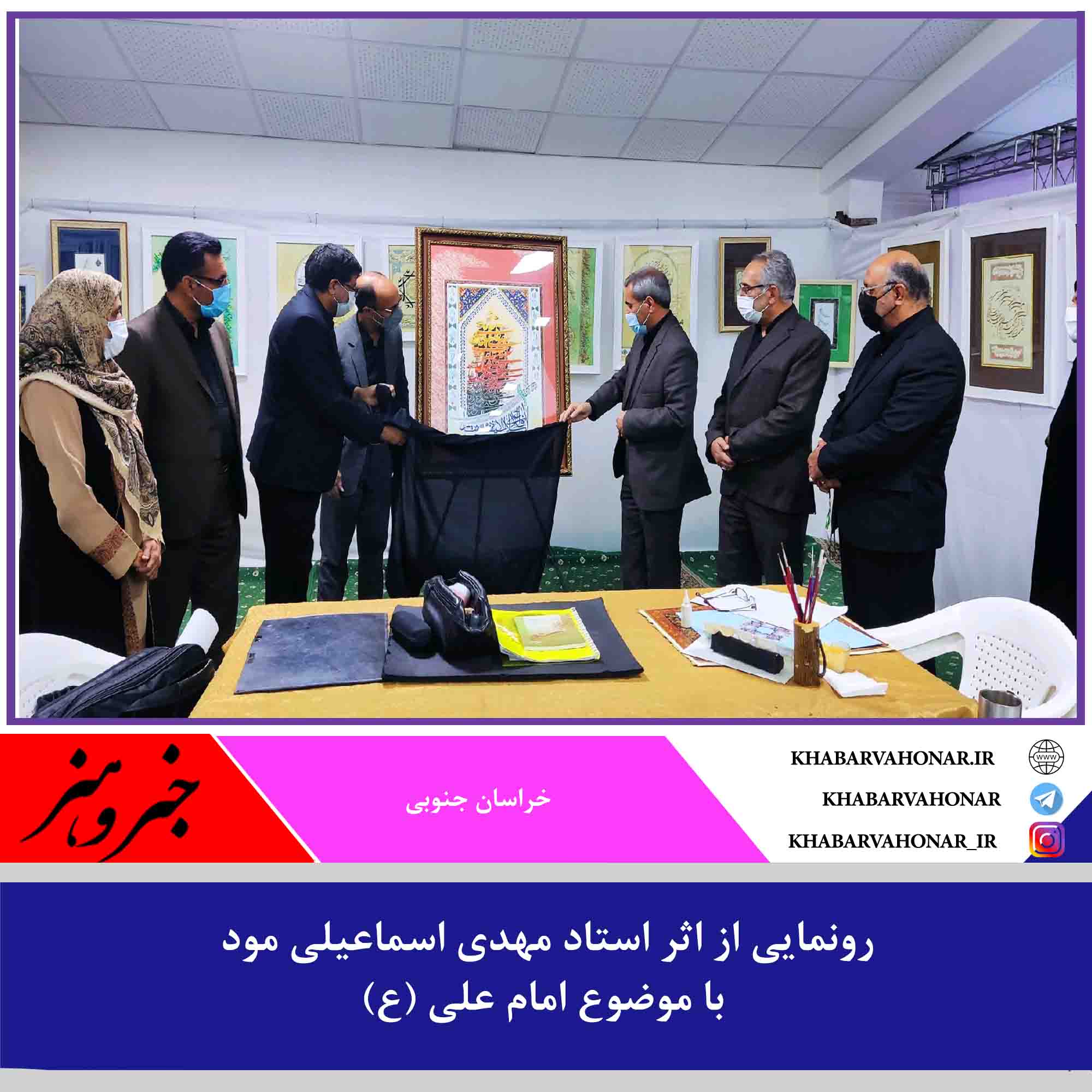 در آخرین روز از نمایشگاه قرآن کریم، با حضور نماینده مردم بیرجند، درمیان و خوسف در مجلس شورای اسلامی و سرپرست اداره کل فرهنگ و ارشاد اسلامی خراسان جنوبی از اثر استاد مهدی اسماعیلی مود با موضوع امام علی (ع) رونمایی شد.