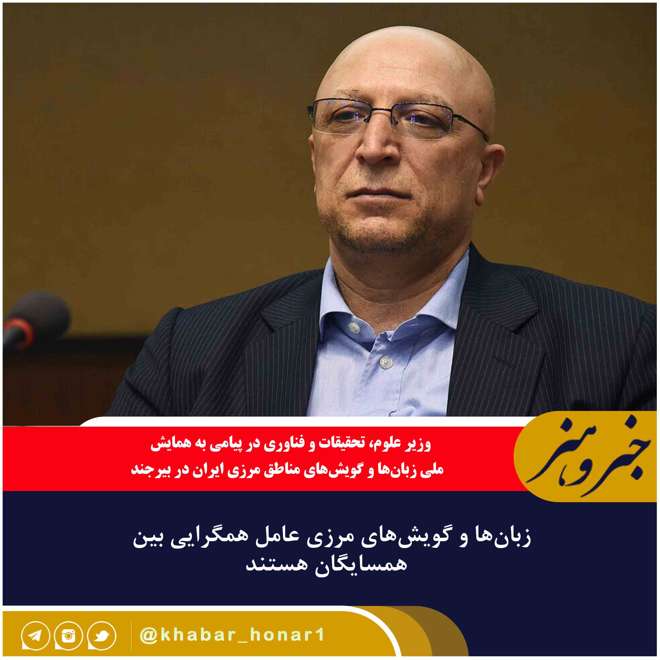 وزیر علوم، تحقیقات و فناوری در پیامی به همایش ملی زبان‌ها و گویش‌های مناطق مرزی ایران در بیرجند گفت: بررسی تعامل این زبان‌ها و گویش‌ها با زبان فارسی به عنوان عامل وحدت و انسجام ملی به سهم خود می‌تواند گامی در راستای همگرایی فرهنگی میان ایران و کشورهای همسایه تلقی شود.