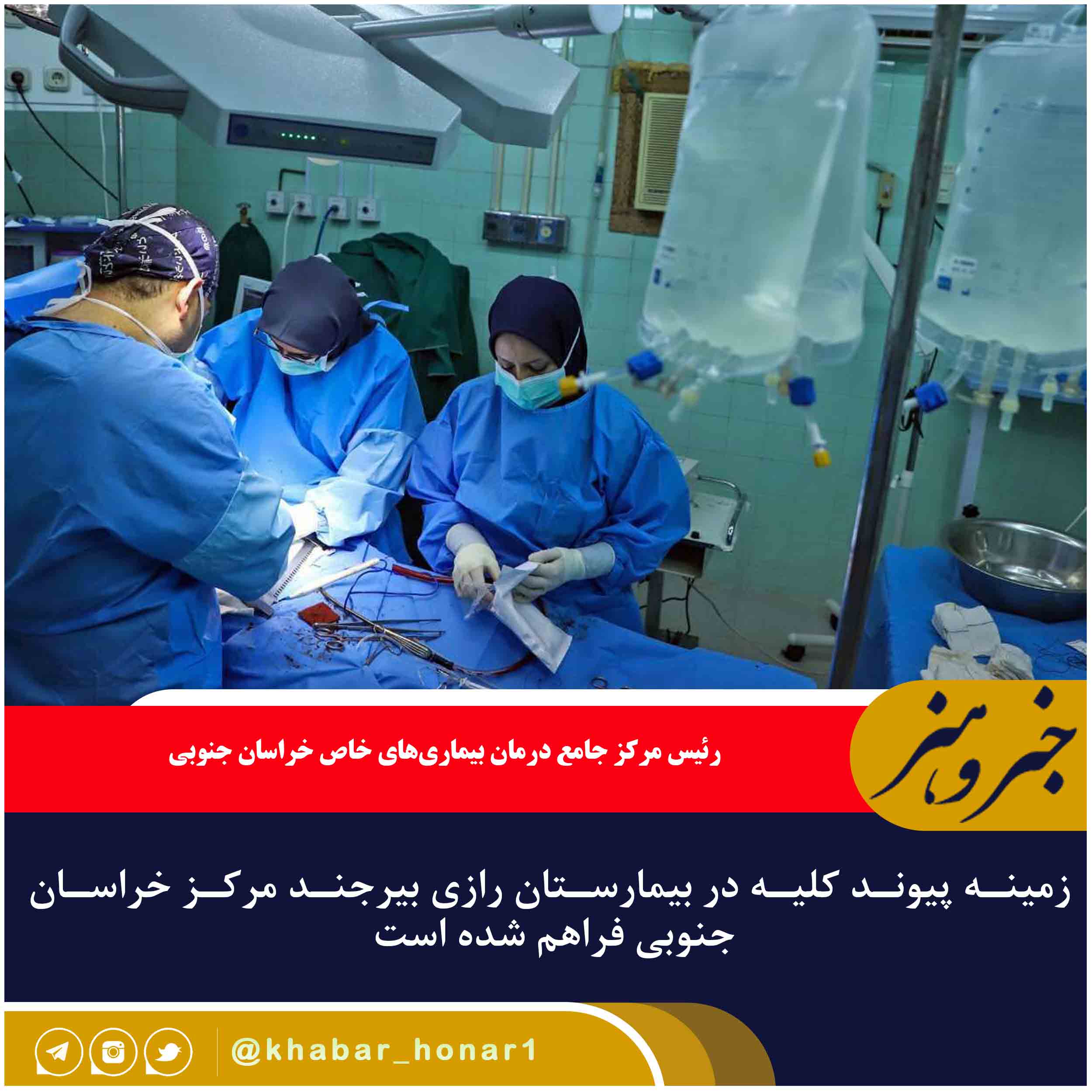 زمینه پیوند کلیه در بیمارستان رازی بیرجند مرکز خراسان جنوبی فراهم شده است