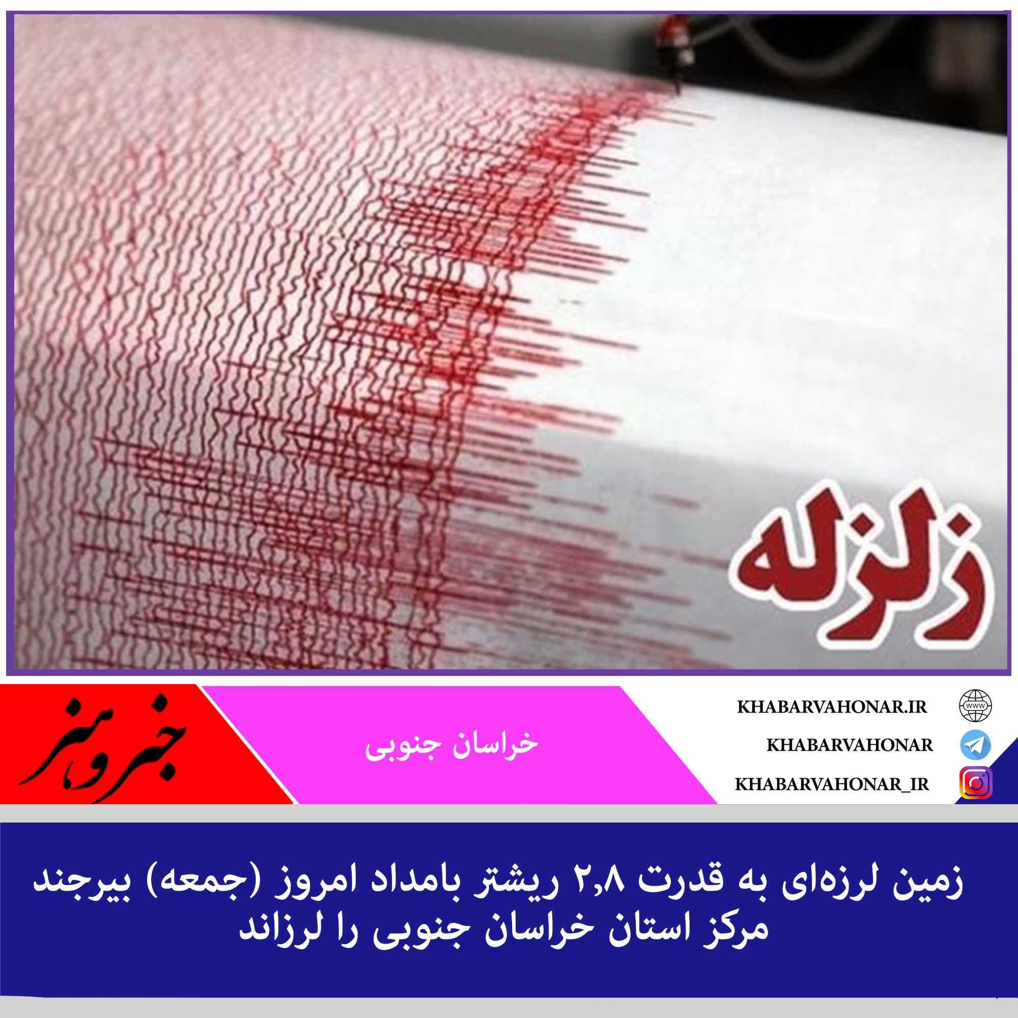 مدیرکل مدیریت بحران استانداری خراسان جنوبی گفت: زمین لرزهای به بزرگی ۲.۸ در مقیاس امواج درونی زمین (ریشتر) در عمق ۶ کیلومتری زمین بامداد امروز، بیرجند مرکز استان خراسان جنوبی را لرزاند.