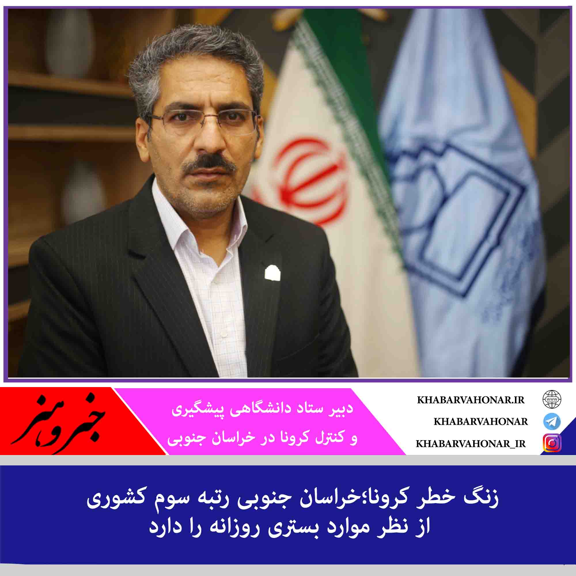 دبیر ستاد دانشگاهی پیشگیری و کنترل کرونا در خراسان جنوبی از افزایش روند ابتلا به کرونا ویروس و کسب رتبه سوم کشوری از لحاظ تعداد موارد بستری روزانه در استان خبر داد.