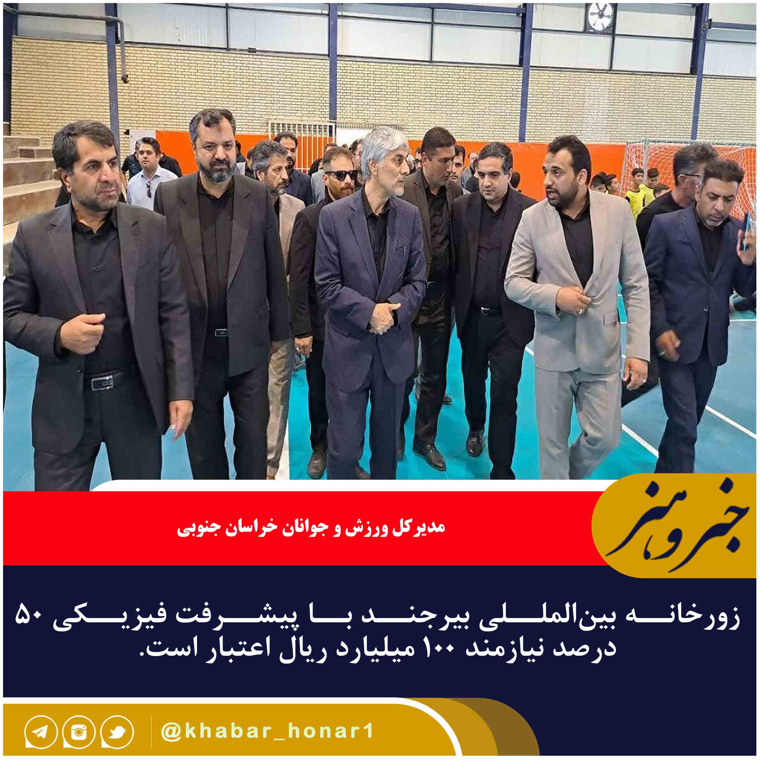 مدیرکل ورزش و جوانان خراسان جنوبی گفت: زورخانه بینالمللی بیرجند با پیشرفت فیزیکی ۵۰ درصد نیازمند ۱۰۰ میلیارد ریال اعتبار است.