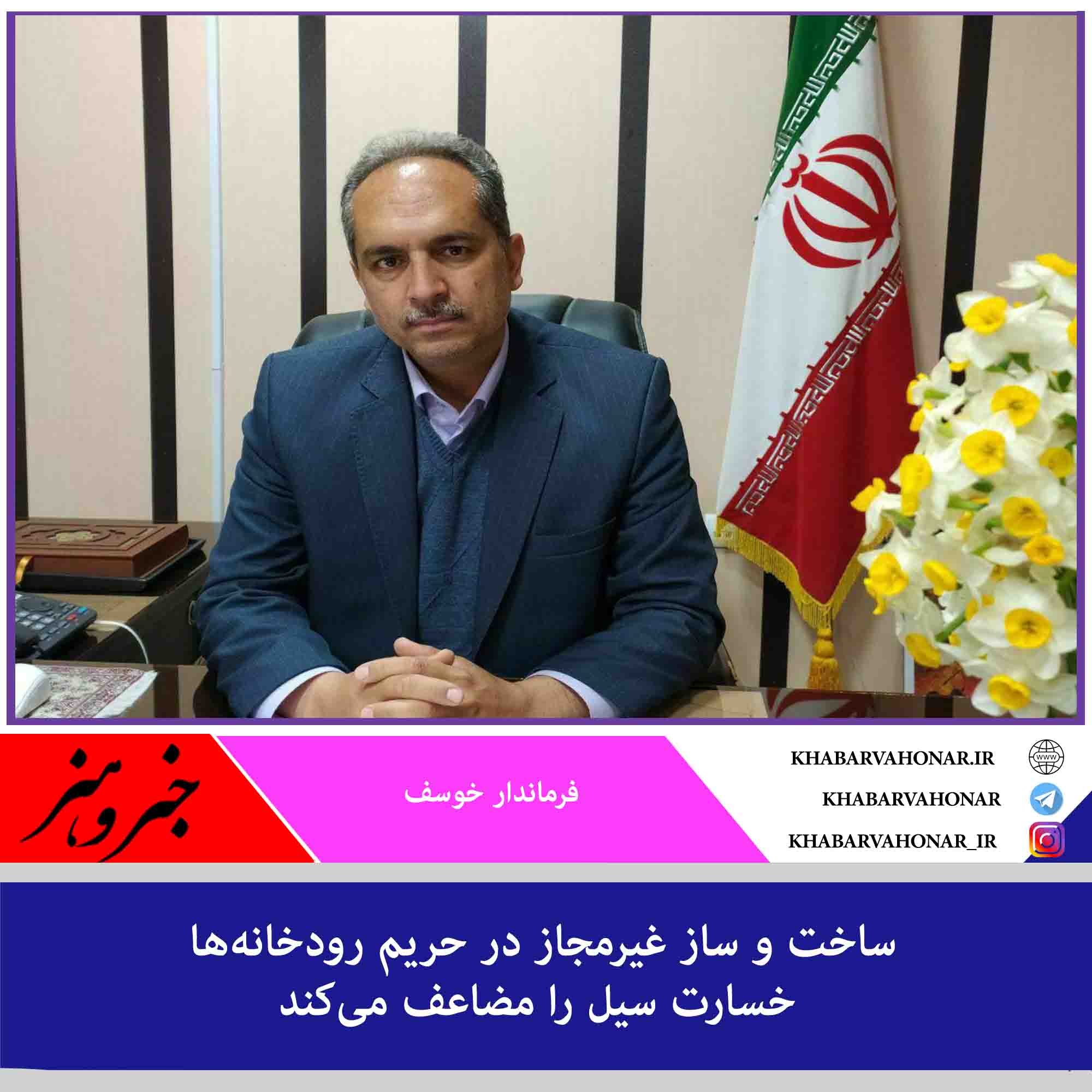 فرماندار خوسف، ساخت و سازهای غیرمجاز در مسیر رودخانهها و تصرف این اراضی را یکی از معضلات در این زمینه دانست و خواستار برخوردهای قانونی با این افراد شد.