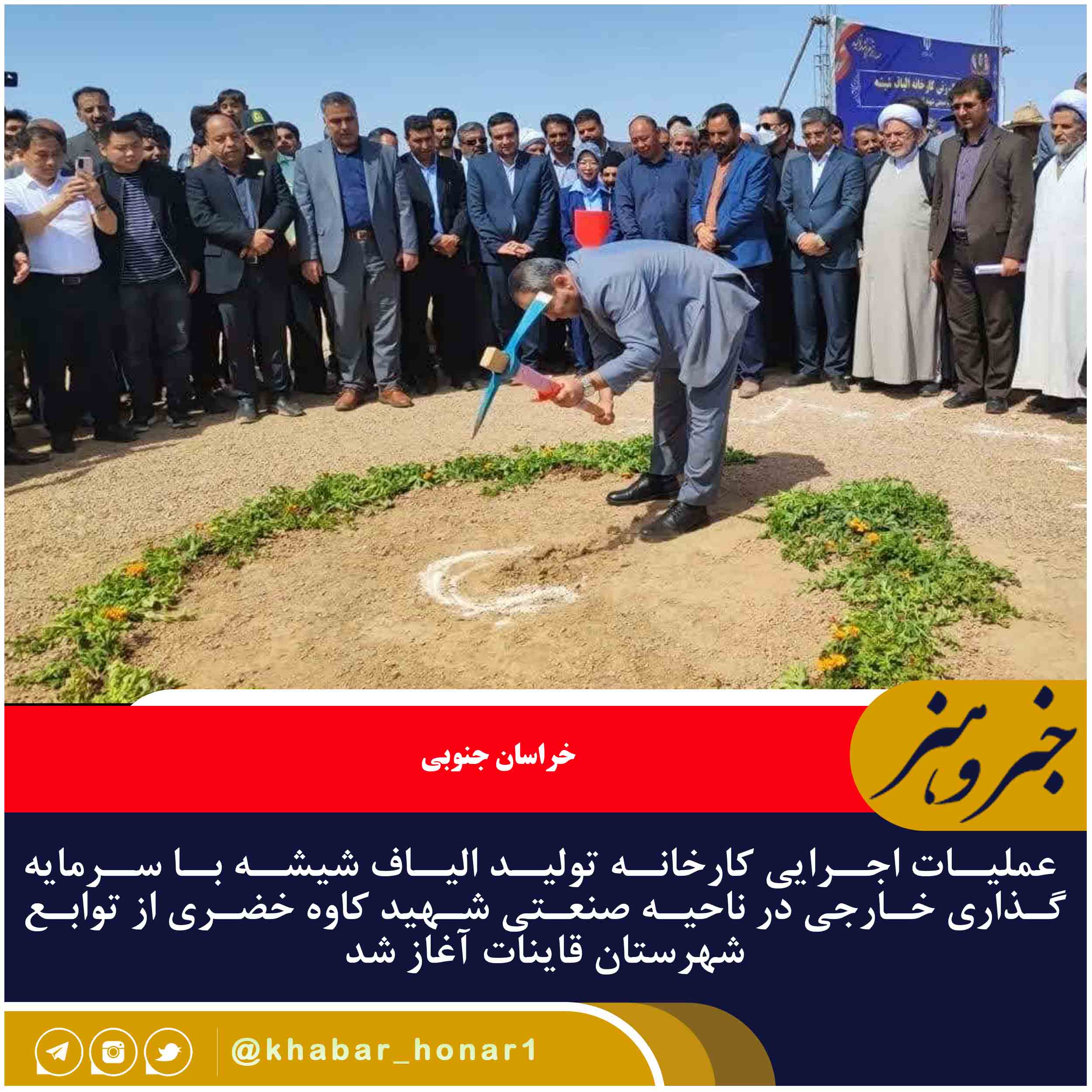 عملیات اجرایی کارخانه تولید الیاف شیشه با سرمایهگذاری خارجی در ناحیه صنعتی شهید کاوه خضری از توابع شهرستان قاینات آغاز شد.