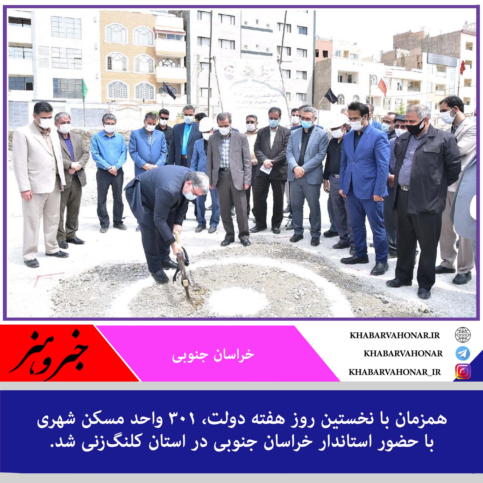 همزمان با نخستین روز هفته دولت، ۳۰۱ واحد مسکن شهری با حضور استاندار خراسان جنوبی در استان کلنگزنی شد.