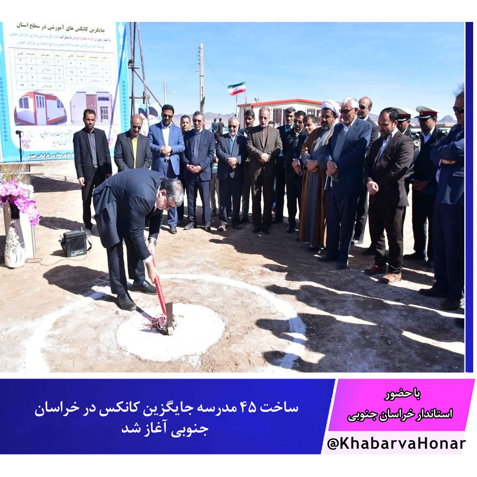 عملیات اجرایی ۴۵ مدرسه با ۵۸ کلاس درس در استان خراسان جنوبی جایگزین کانکسهای آموزشی همزمان با هشتمین روز دهه فجر با حضور استاندار و جمعی از مدیران در شهرستان نهبندان آغاز شد.